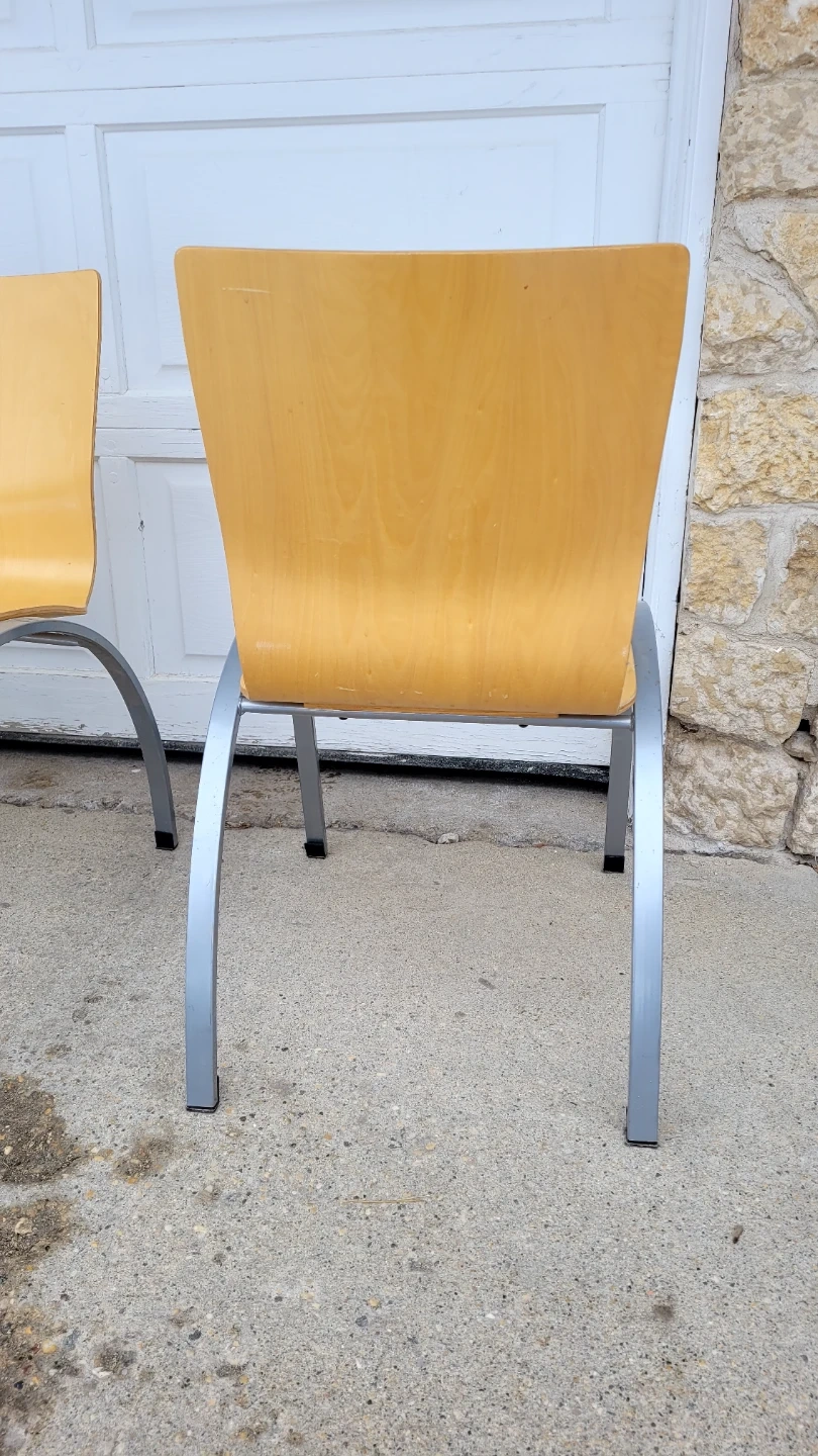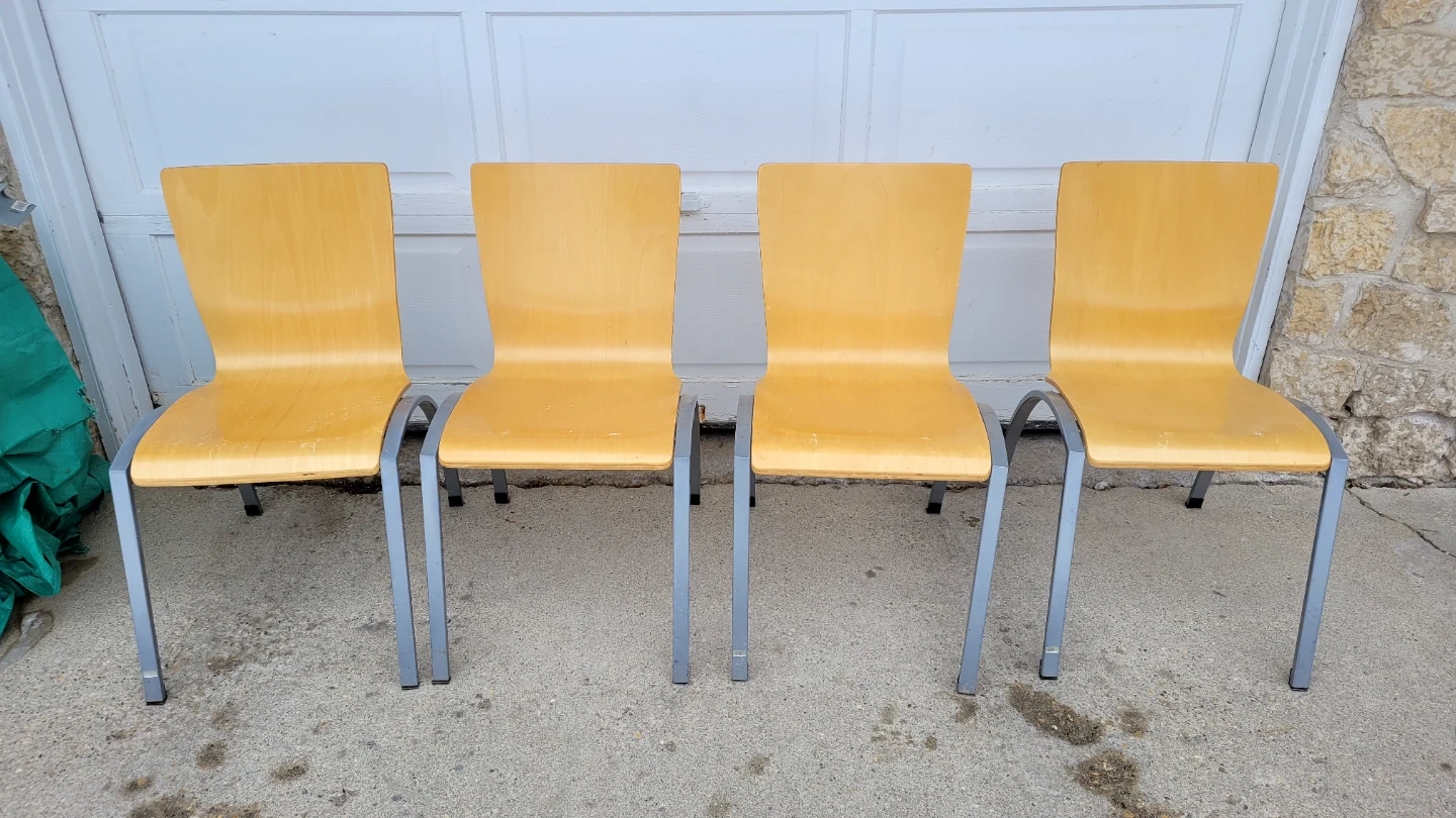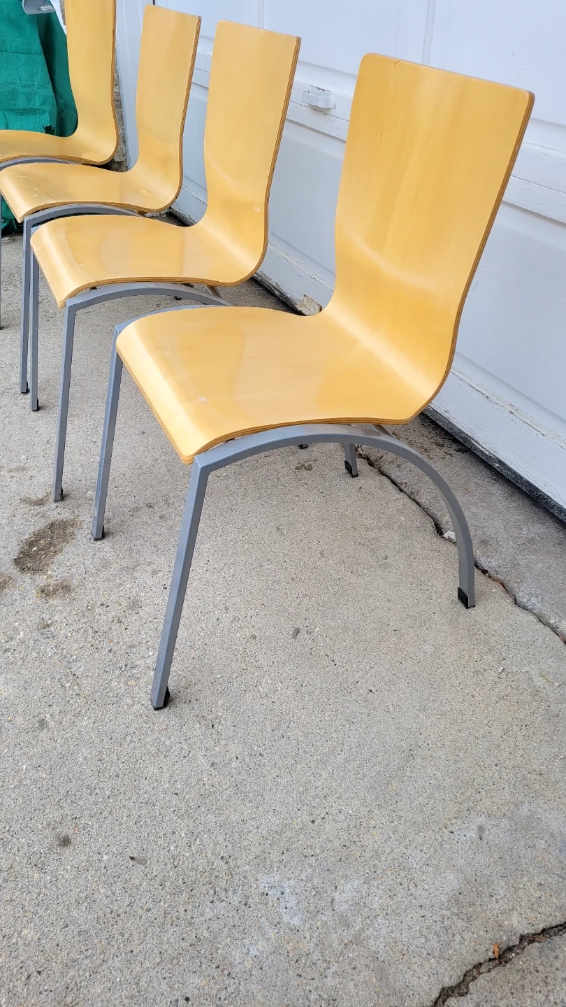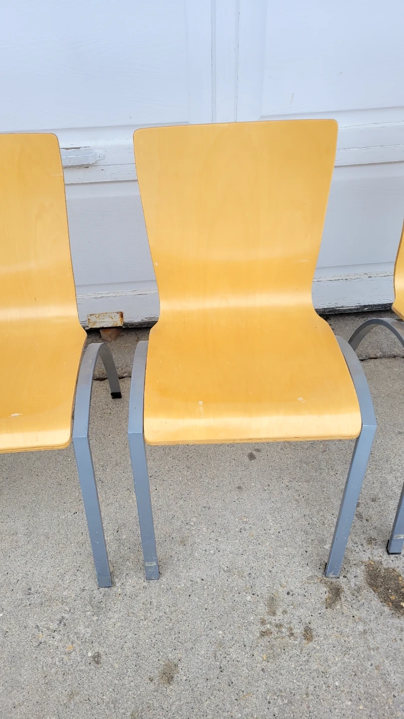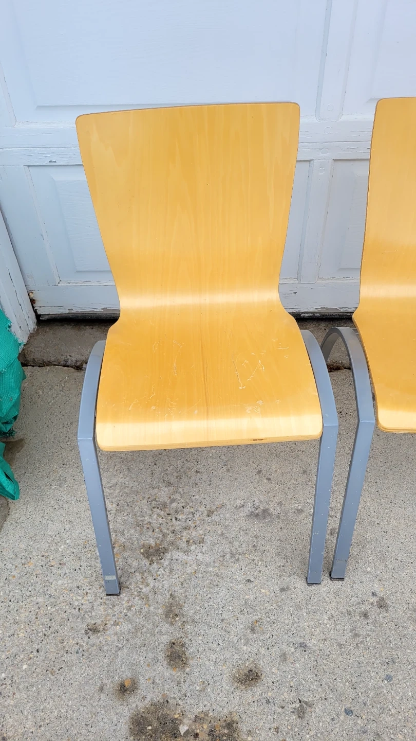 Comfortable, sturdy wood chairs. Can be stacked up for storage. Have some scuffs on the seats but otherwise in good condition. Pick up close to birds hill. Cash only.