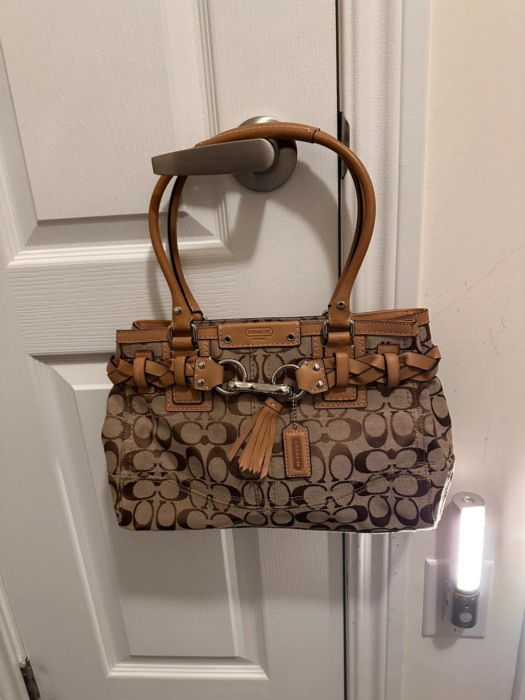 Selling a Brand new Coach Signature Collection tote bag! It features a sophisticated pattern inspired by graphic elements from Coach archives. The bag is made of woven jacquard fabric specially treated to repel water and stains.