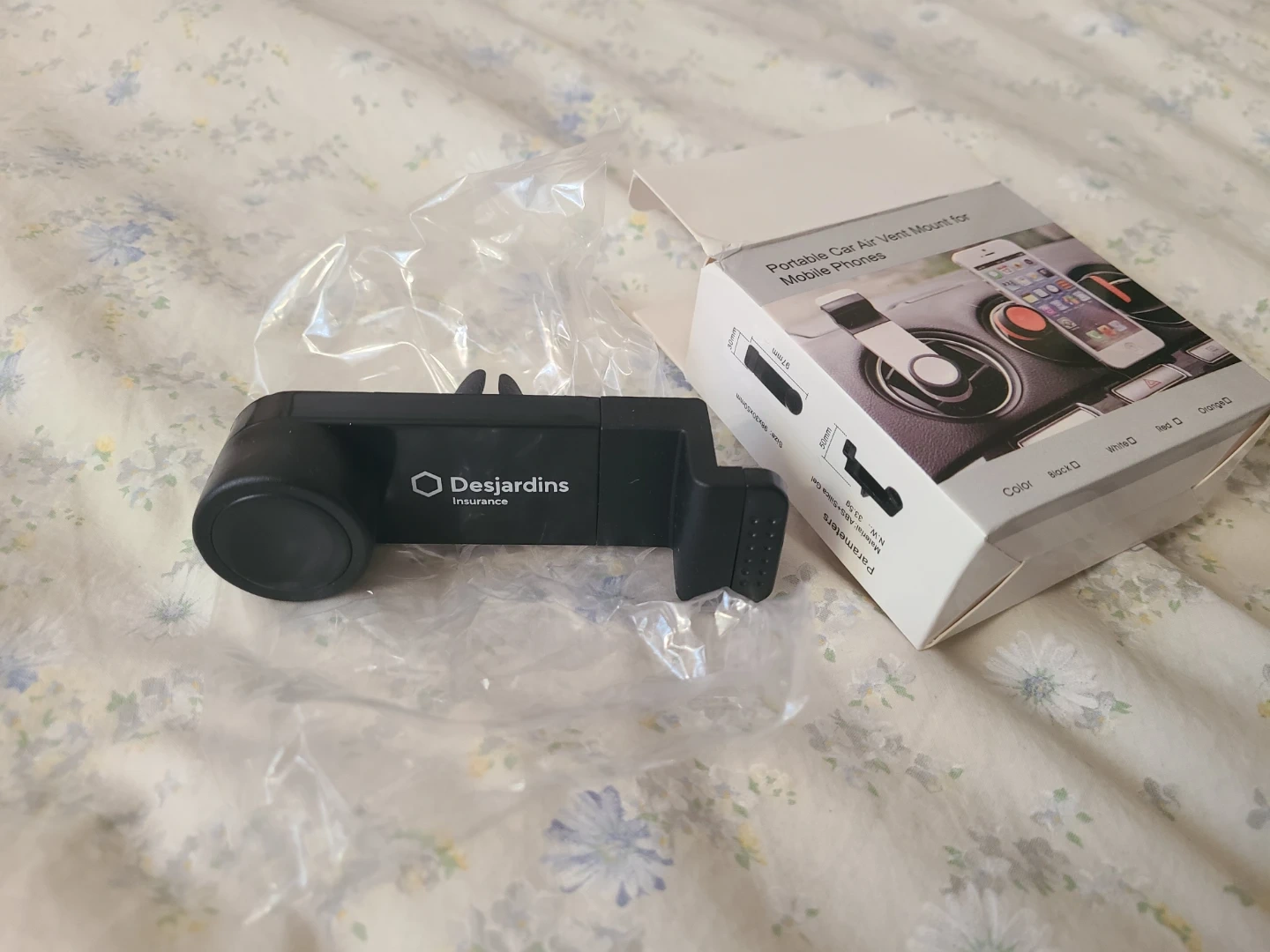 Hiving away this black portable car air vent mount for mobile phones. It attaches easily to your car's air vent.