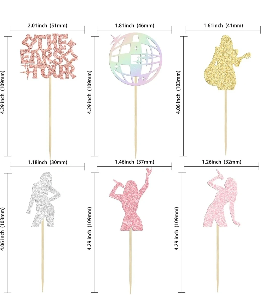 24 PCS Era-Inspired Taylor Birthday Cupcake Toppers...New