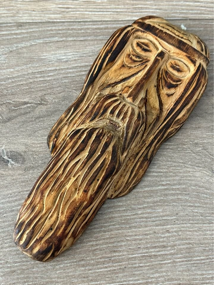 Hand-Carved Wood Spirit Wall Hanging – Rustic Folk Art