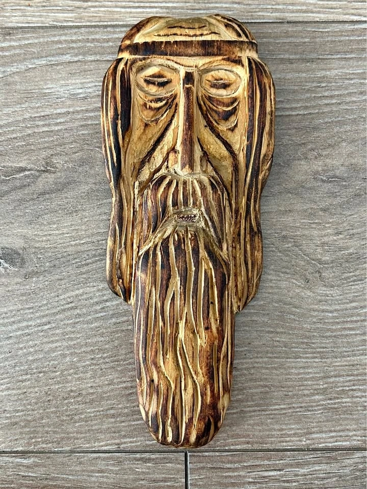 Hand-Carved Wood Spirit Wall Hanging – Rustic Folk Art