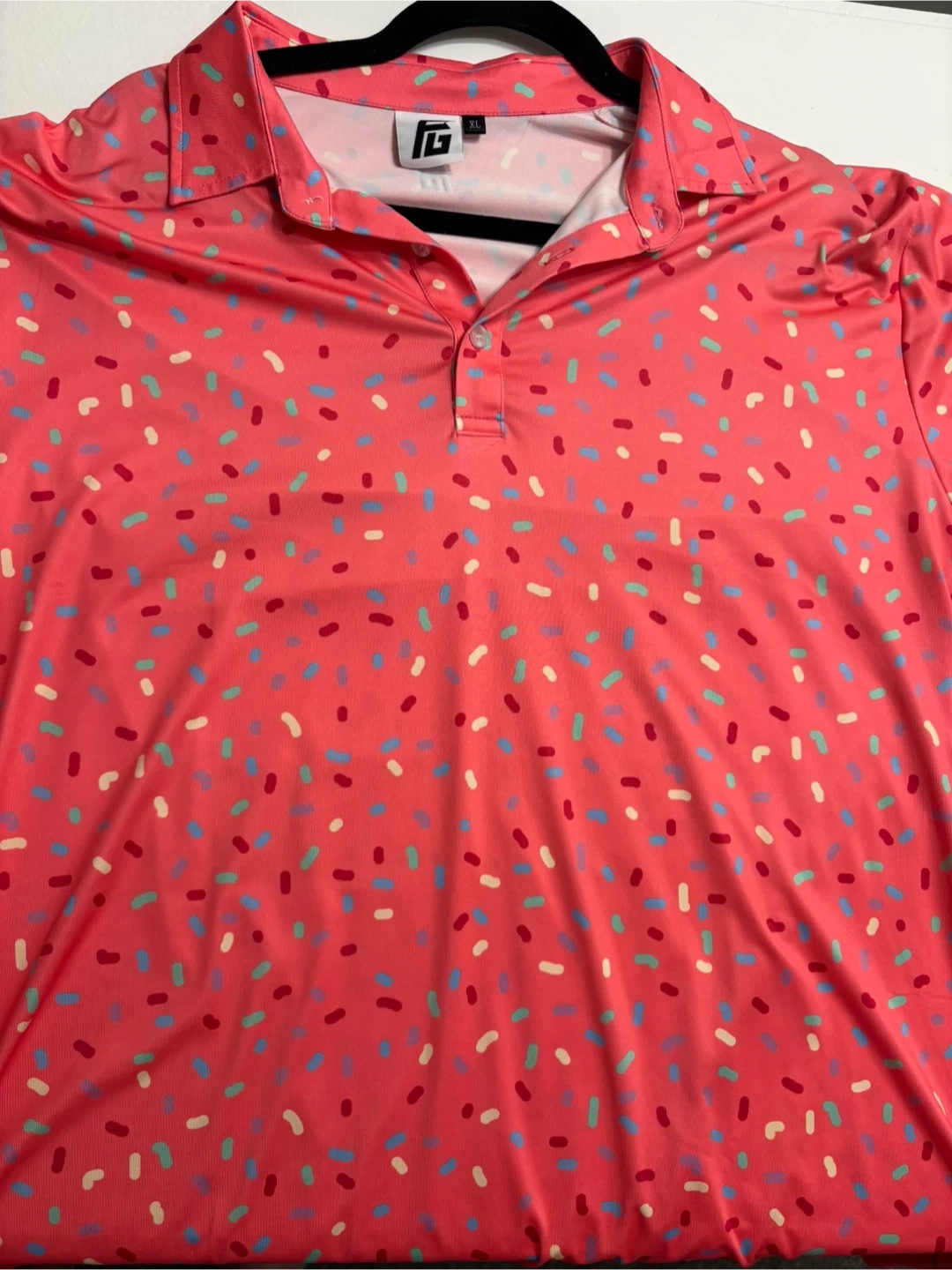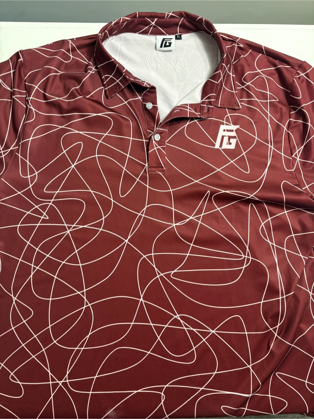Here are some FG golf polo shirts in size XL. They feature unique patterns and are perfect for a day on the green!
