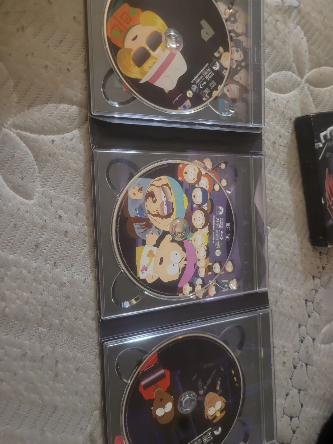 All fourteen uncensored episodes from South Park's twelfth season are here on this three-disc Blu-ray set. It comes with bonus features including "Six Days to South Park," "A Day-by-Day Making of South Park," and "Major Boobage" behind-the-scenes. Mini-commentaries by creators Trey Parker and Matt Stone are also included. Dm me for location cash or etransfer only pick up only