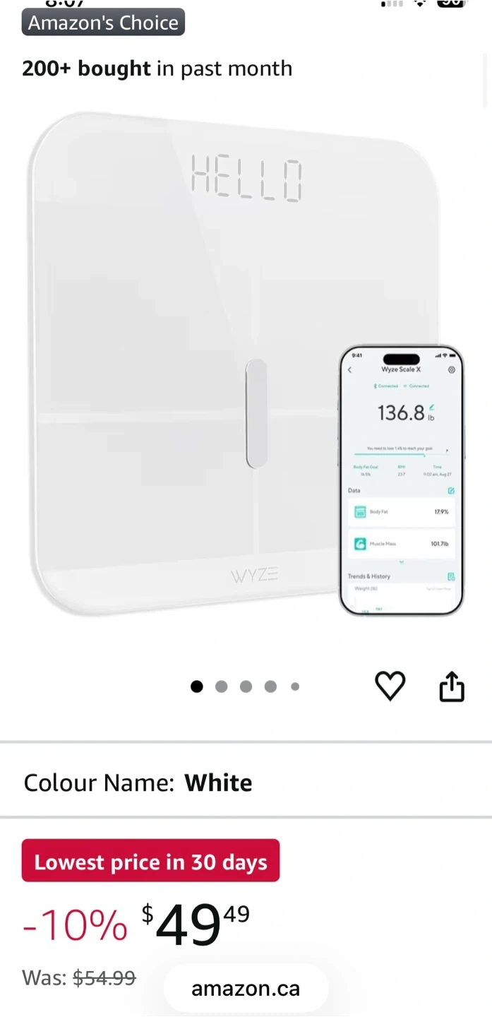 Buy & SellWyze Scale X Smart Body Composition Scale - WhiteWyze Scale X Smart Body Composition Scale - White$40Wyze smart scale. White colour. Tracks weight, BMI, body fat, and muscle mass. Includes pet mode for weighing pets.ConditionNewBrandWyzeWHERE TO MEETMarkham and EllesmereView MapSELLERverifiedTomMorningside17714 reviews1 chats·0 favorites·35 viewsSEND CHAT TO SELLERHi Tom! I’m interested in your listing.Hi Tom! I’m interested in your listing.Get the Karrot app to chatSign In to chat