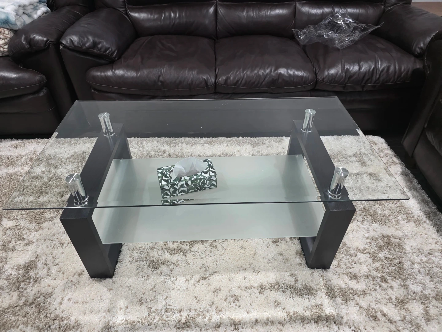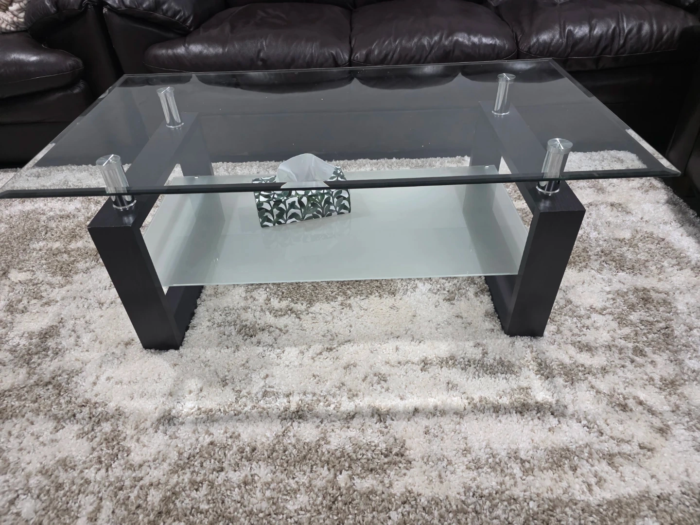 Glass Top Coffee Table with Frosted Shelf