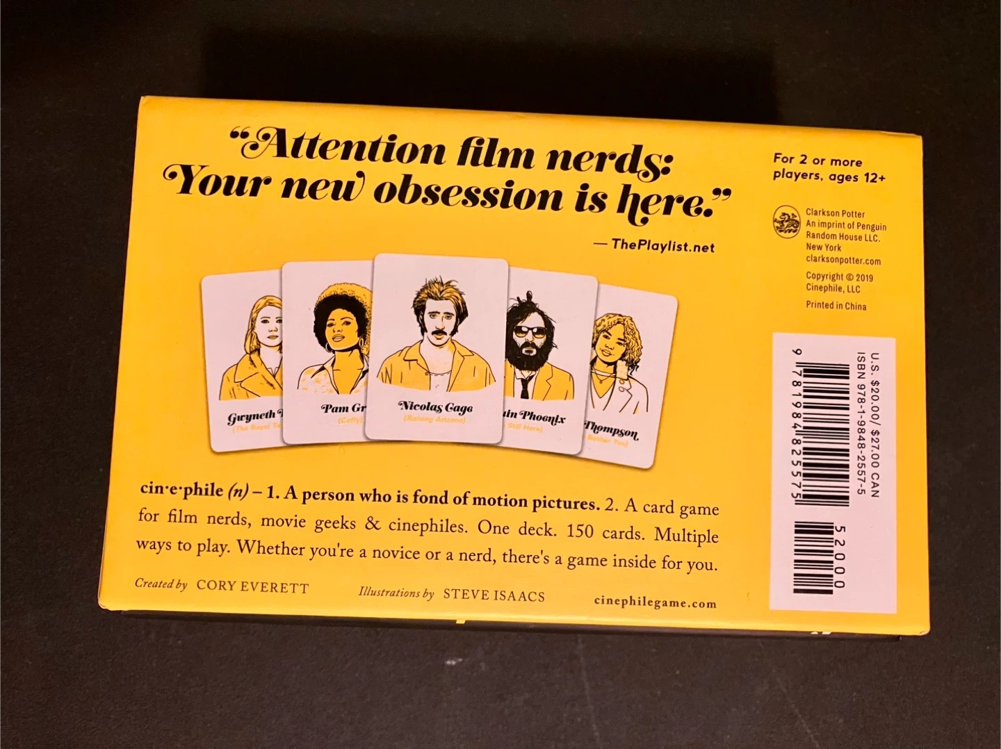 Cinephile is a card game for film nerds, movie geeks & cinephiles. It's designed for 2 or more players, ages 12+. This edition includes 150 cards and multiple ways to play.