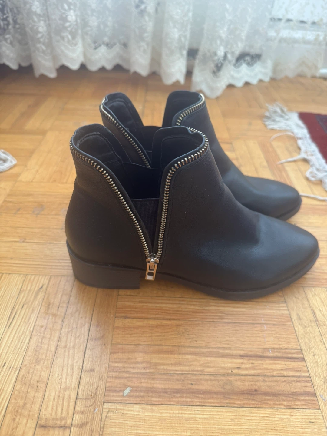 Call It Spring black leather ankle boots with a side zipper closure. These stylish boots are perfect for everyday wear.