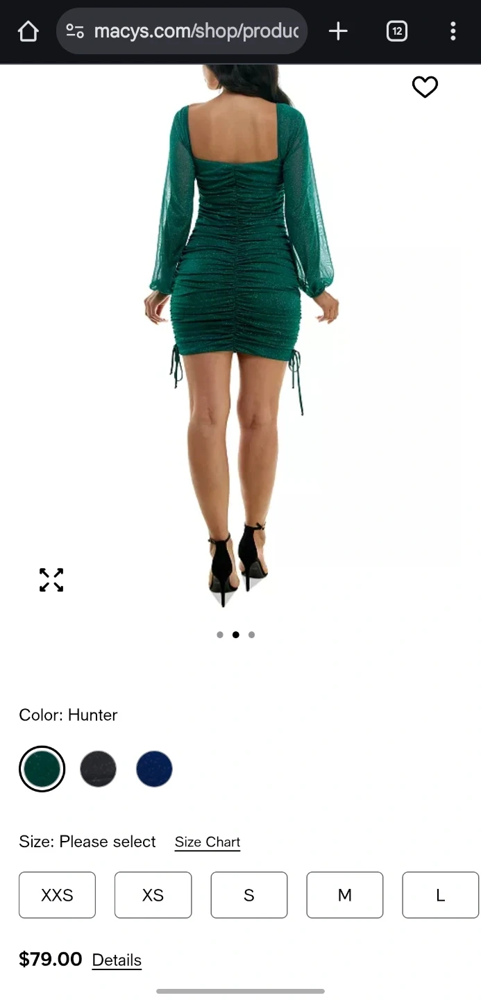 Selling a Jump Juniors' Glitter Ruched Mini Bodycon Dress in hunter green. This dress features a square neck and long sleeves with a ruched bodycon fit. Originally bought for $79
