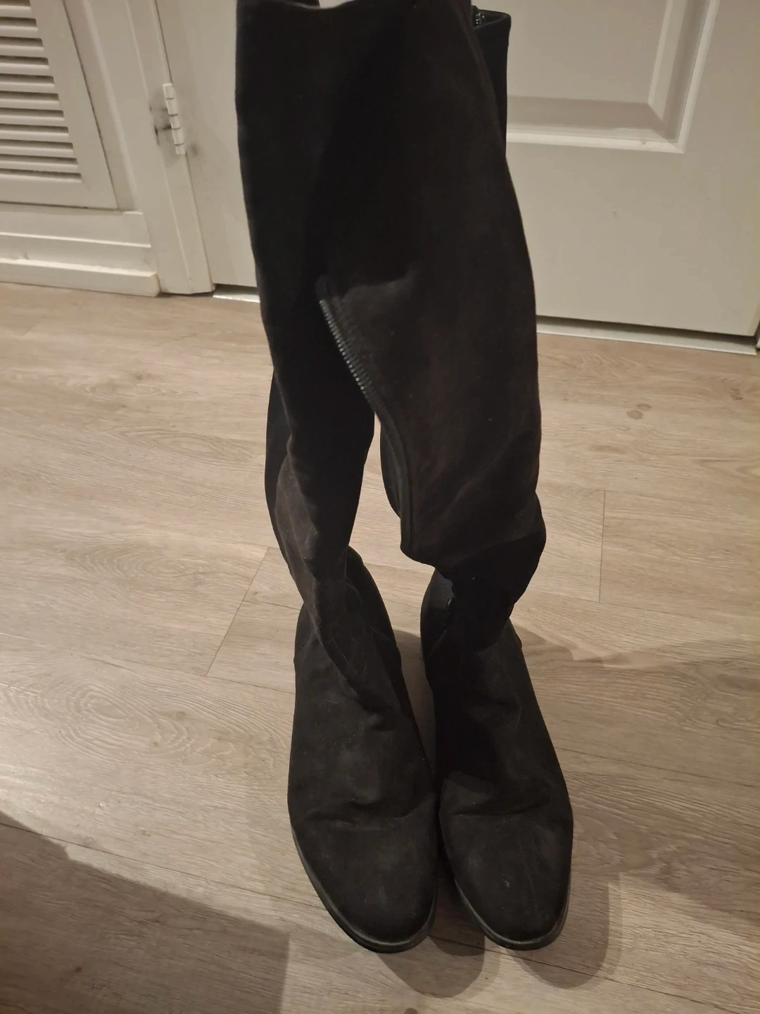 Selling a pair of gently used black knee-high boots. They're in great condition and ready for a new home! Perfect for adding a touch of style to your wardrobe.