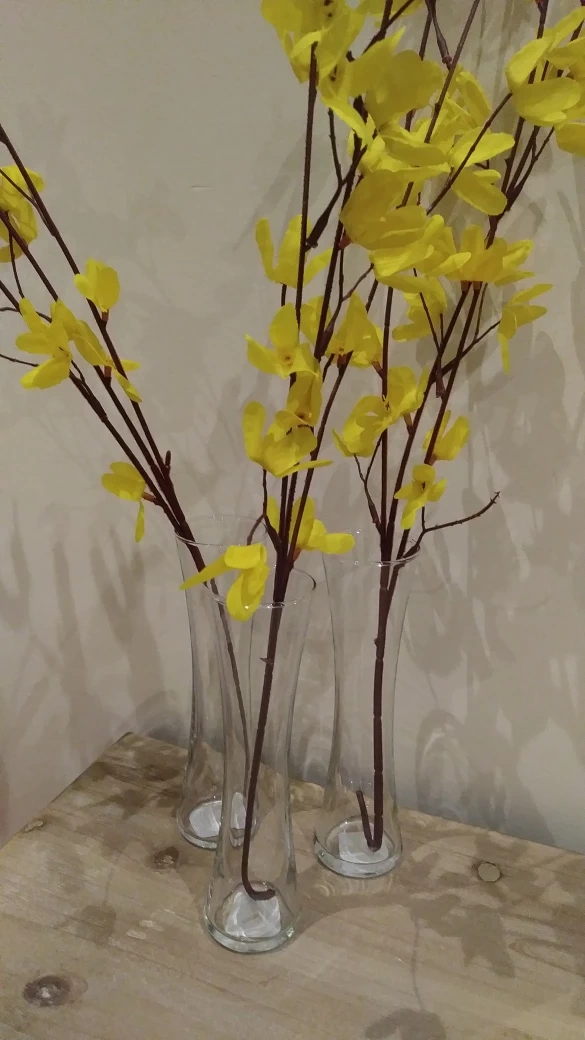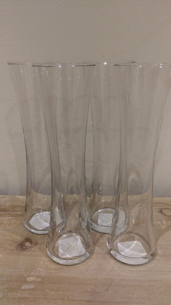 Hi, I am selling these vases as a bundle for $8, so all 4 vases. Never used and I don't have the boxes. The height is 8" and the opening is 2" that can hold flowers or branches or what ever you like to place into it.