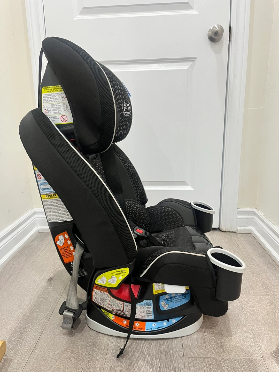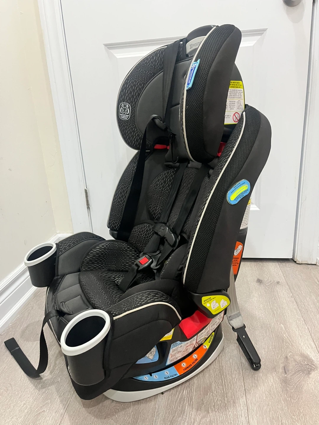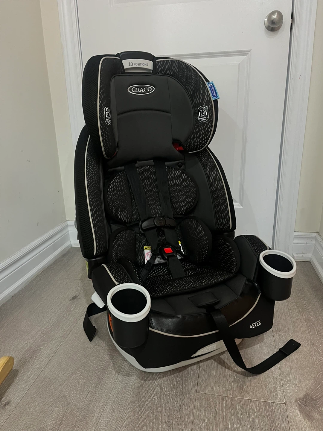 This Graco 4Ever car seat offers 10 positions for growing kids. It features ProtectPlus Engineered for safety. Steel frame construction.