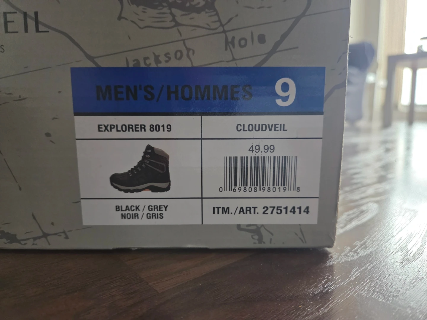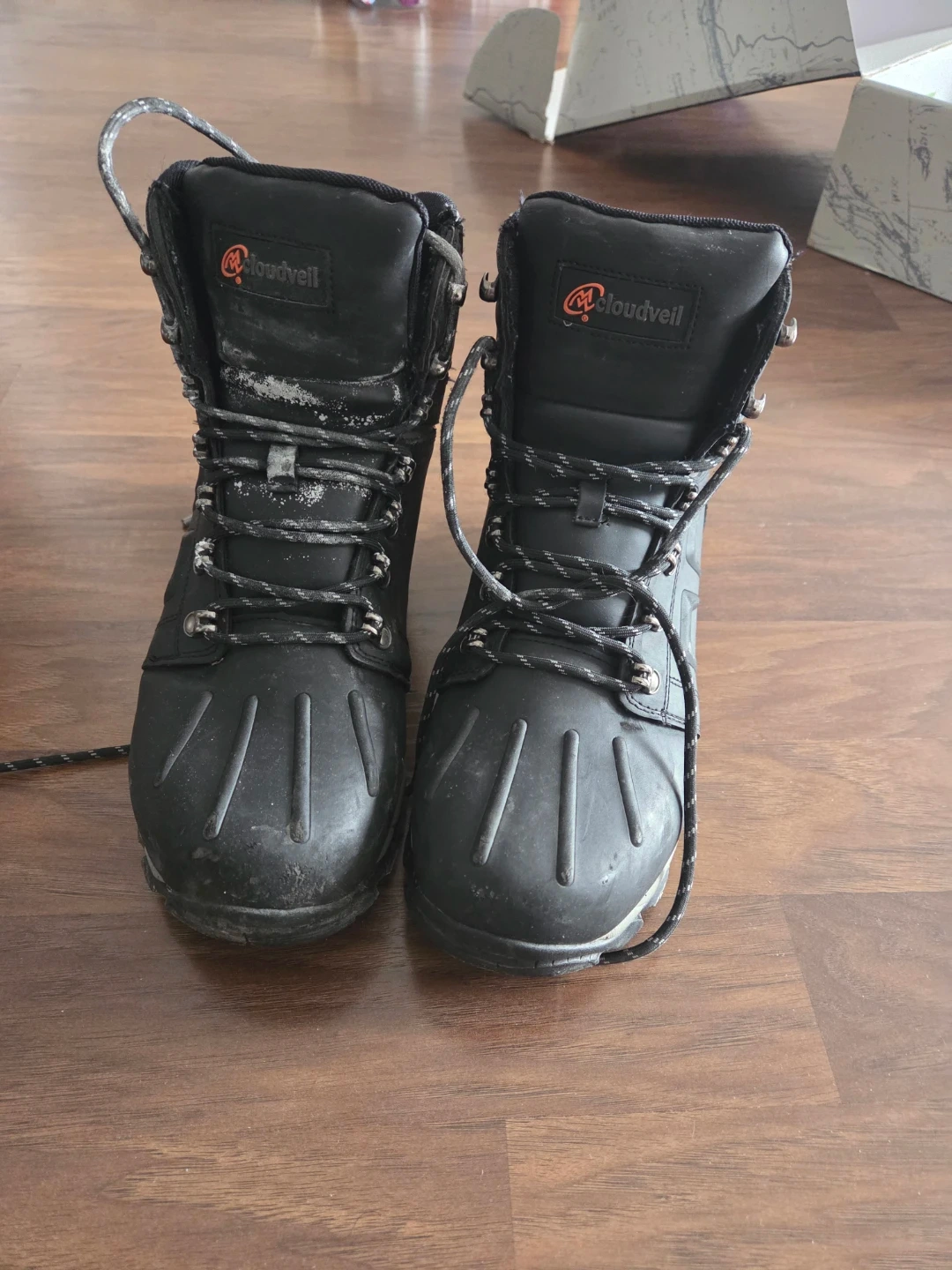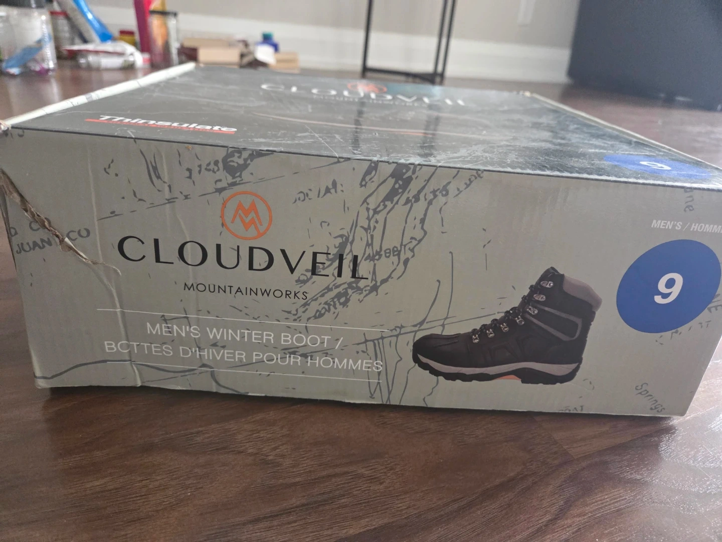 Selling a pair of Cloudveil Mountainworks Men's Winter Boots, size 9. These are the Explorer 8019 model in black/grey. They come with the original box. Originally bought for $49.99