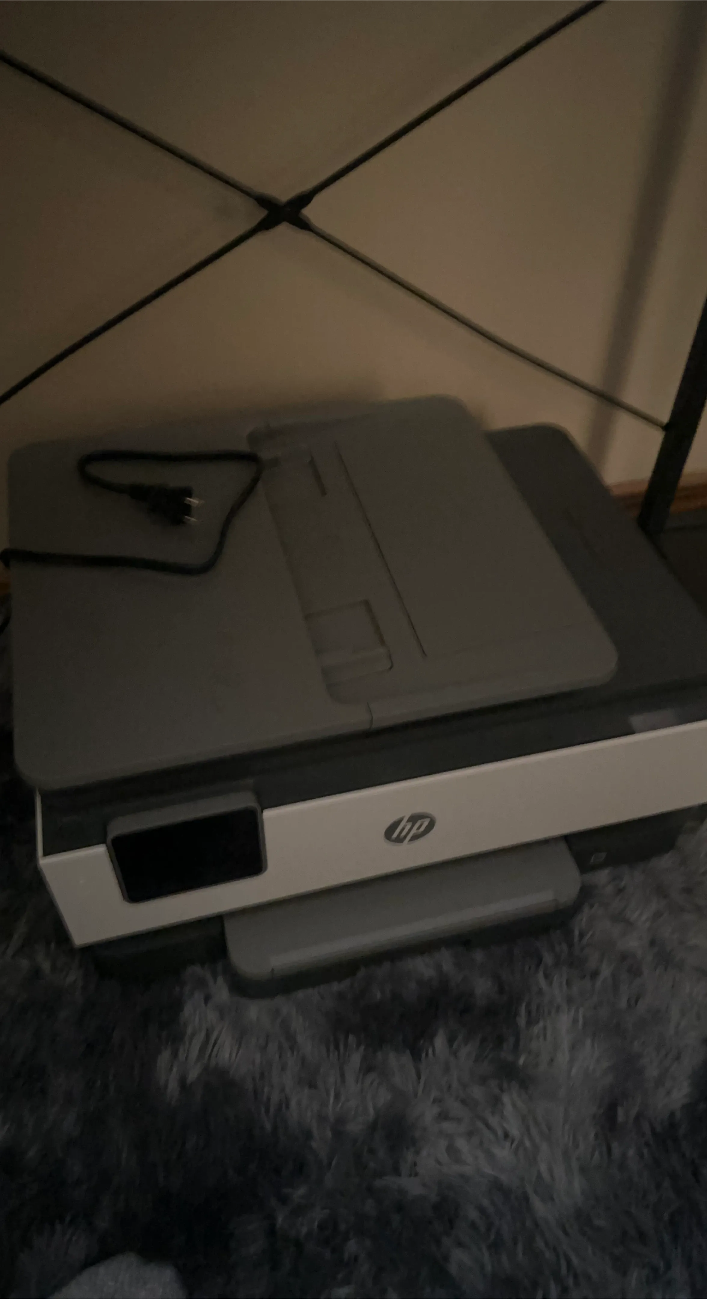 This is an HP OfficeJet Pro 9015e All-in-One printer. It's a versatile device that can print, scan, and copy. This printer is in good working condition and includes its power cord.
