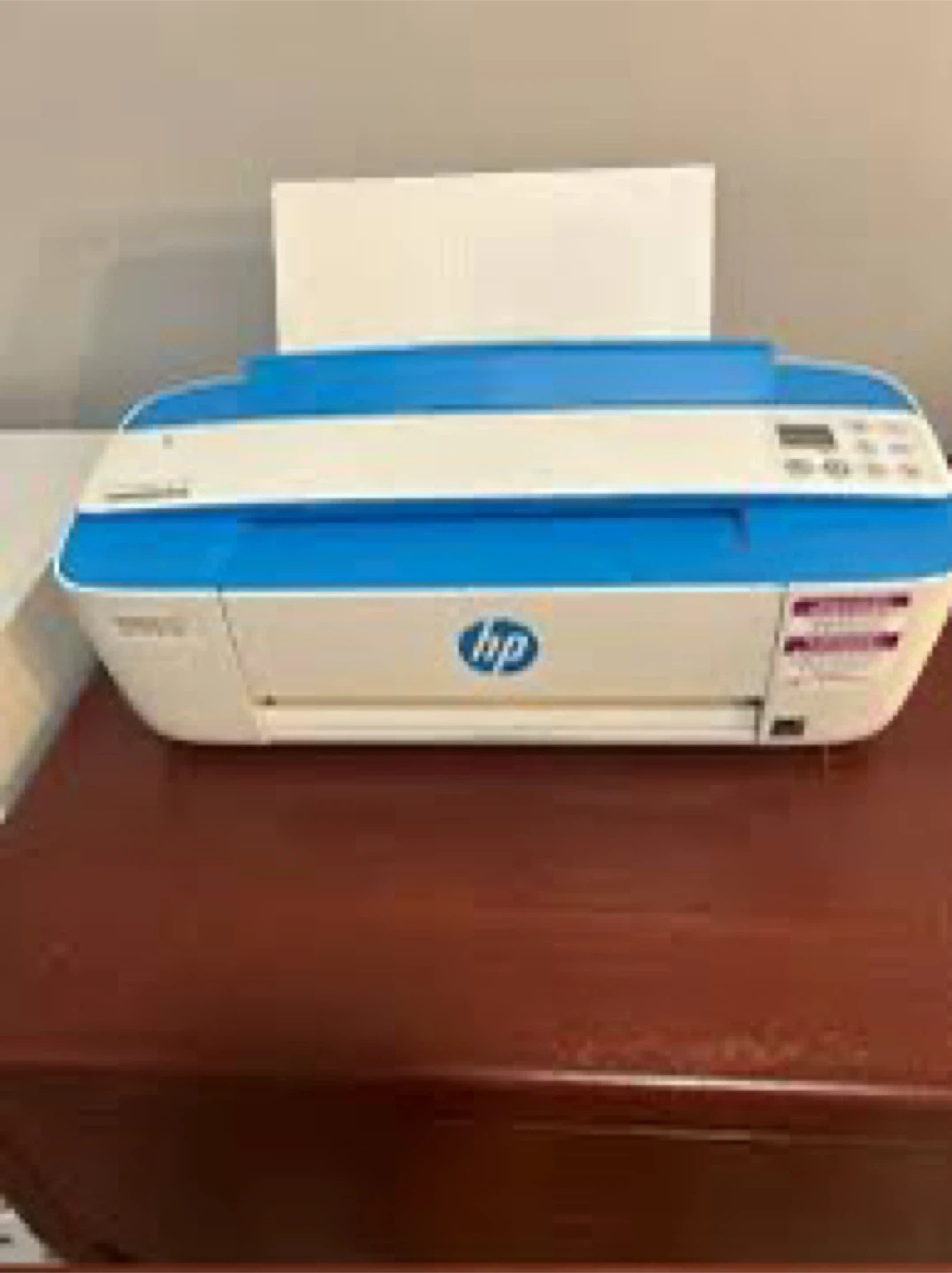 Selling an HP DeskJet 3755 all-in-one printer in white and blue. It's perfect for home use and handles printing, scanning, and copying. Get your documents sorted with this reliable printer!