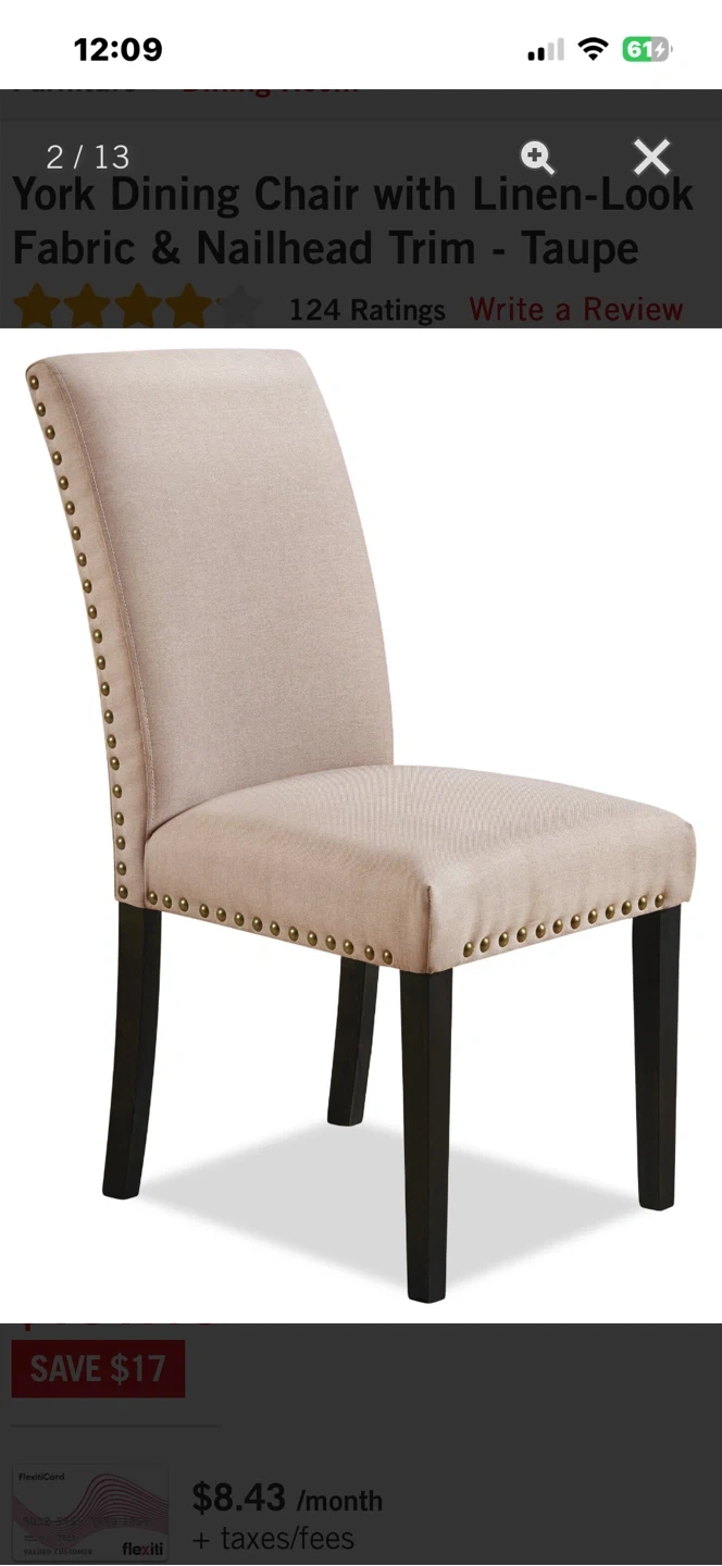 York Dining Chair with Linen-Look Fabric & Nailhead Trim - Taupe
