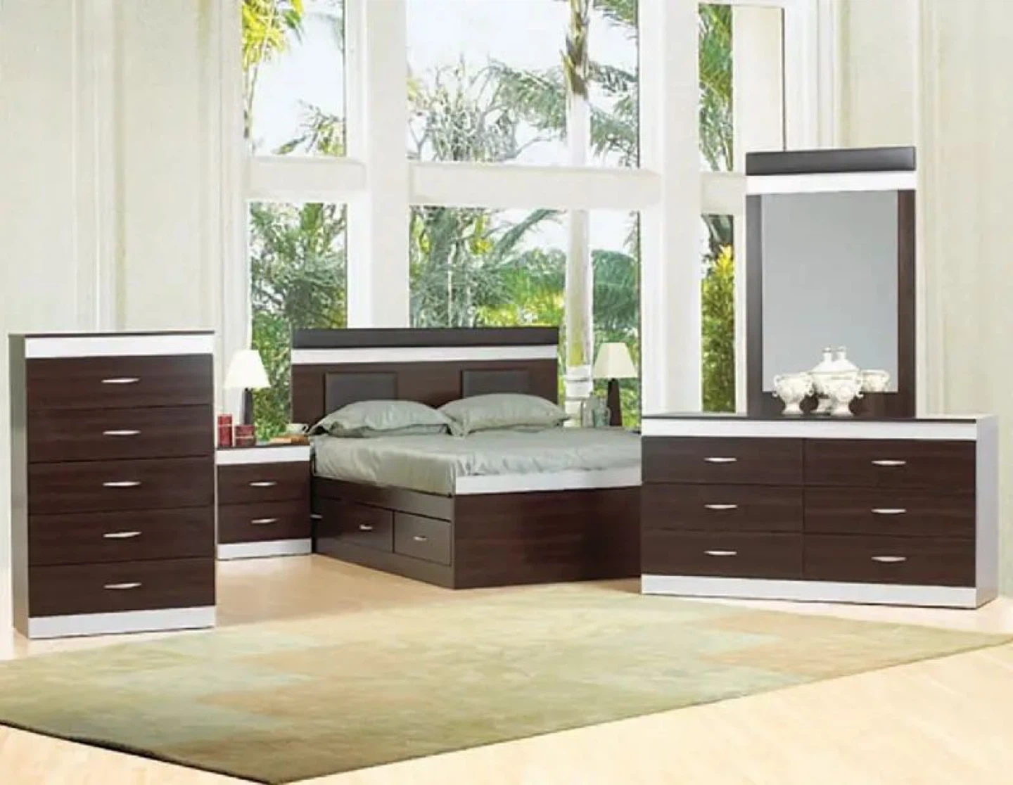 Bedroom Set - Dark Wood with White Accents