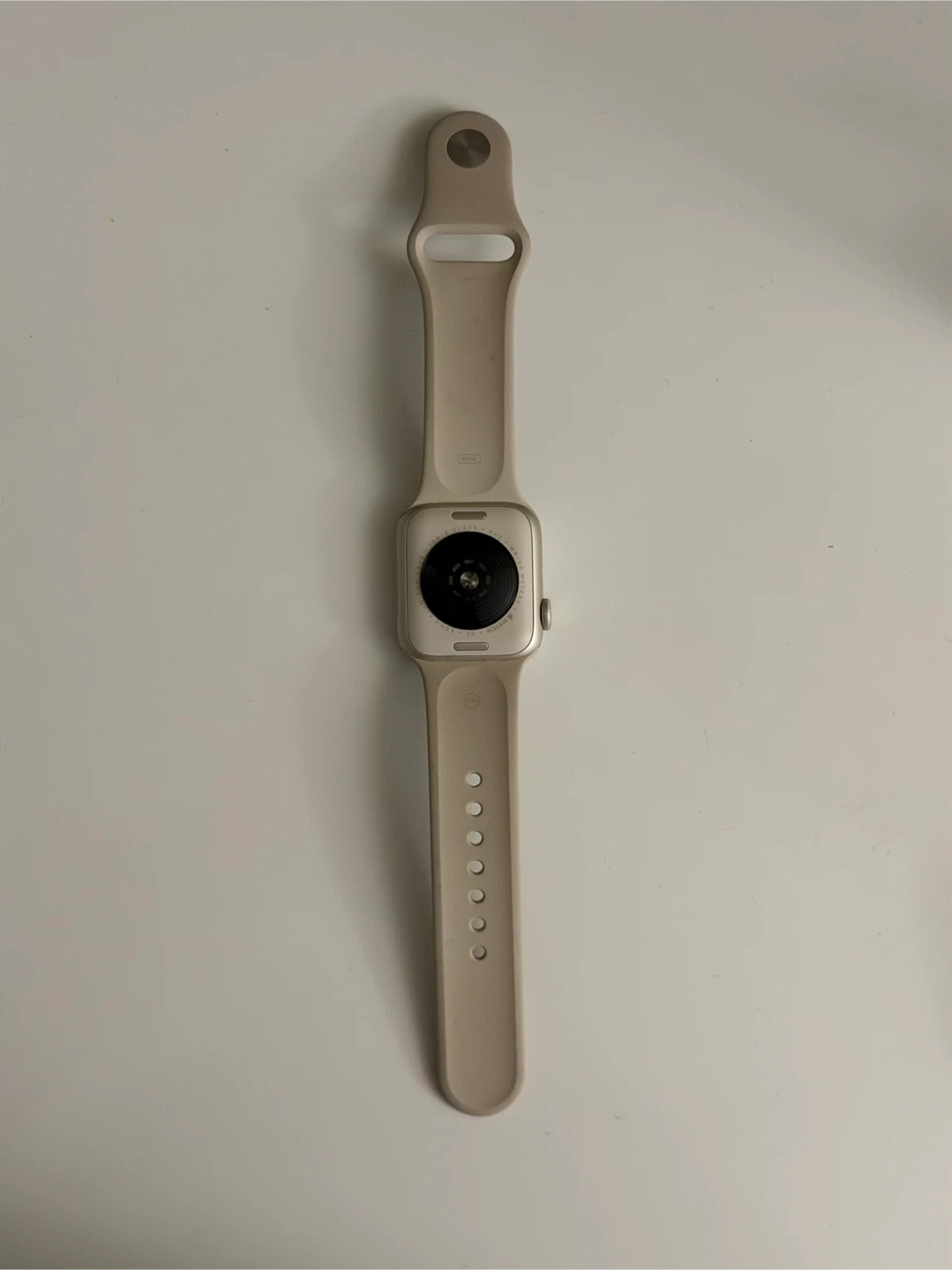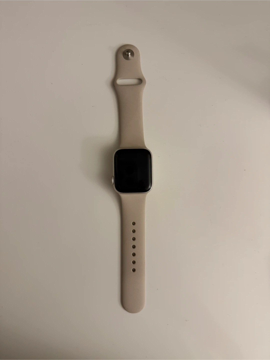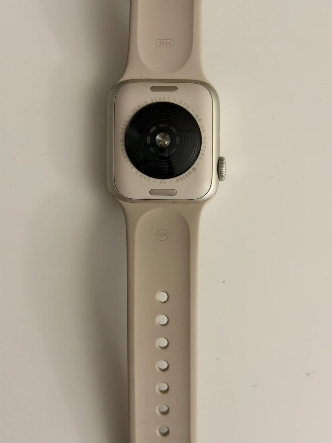 This is an Apple Watch SE, 2nd generation, in starlight aluminum with GPS. It's a 41mm size. The watch comes with a beige sport band. (selling bc I have a new watch)