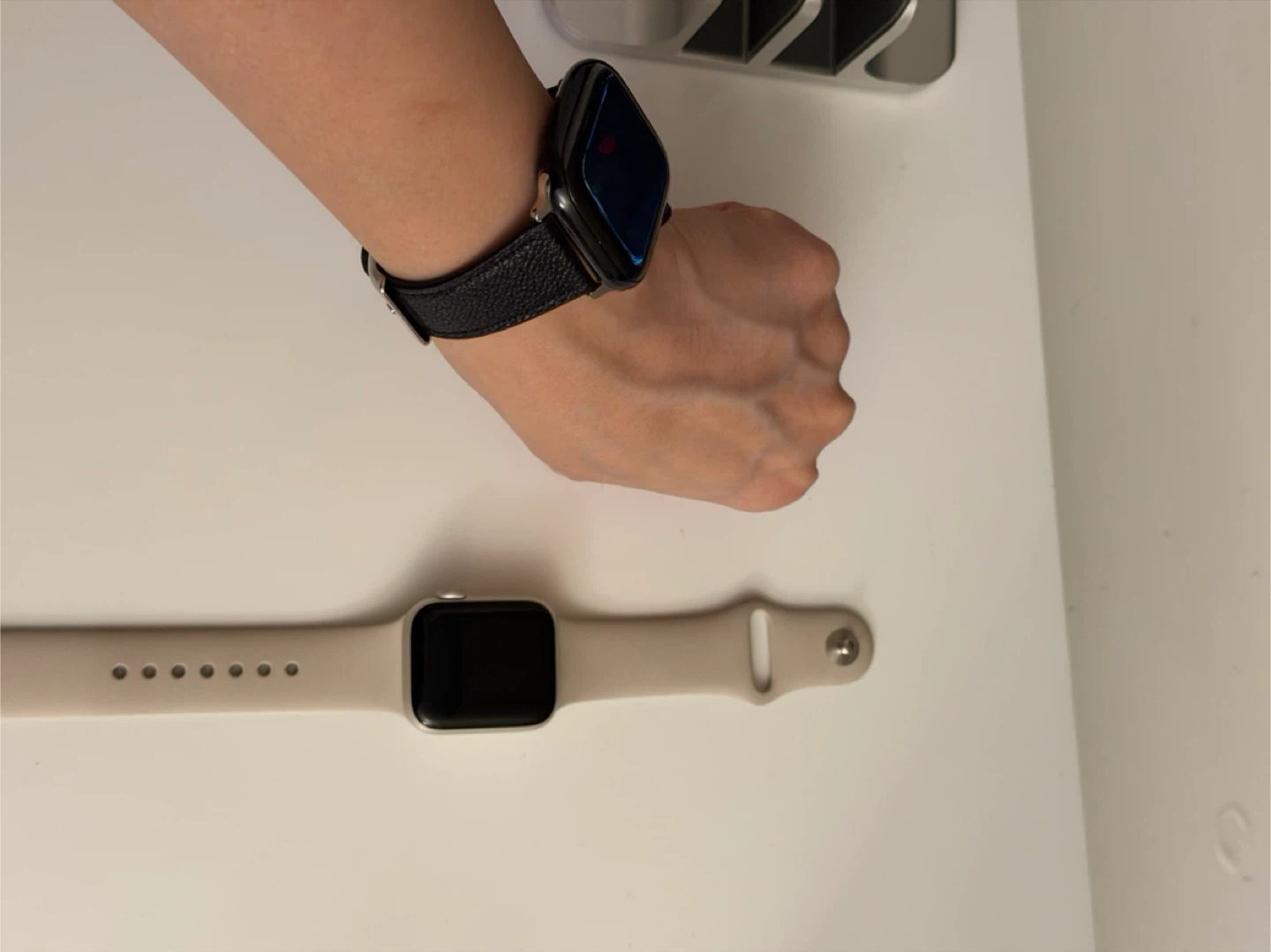 This is an Apple Watch SE, 2nd generation, in starlight aluminum with GPS. It's a 41mm size. The watch comes with a beige sport band. (selling bc I have a new watch)
