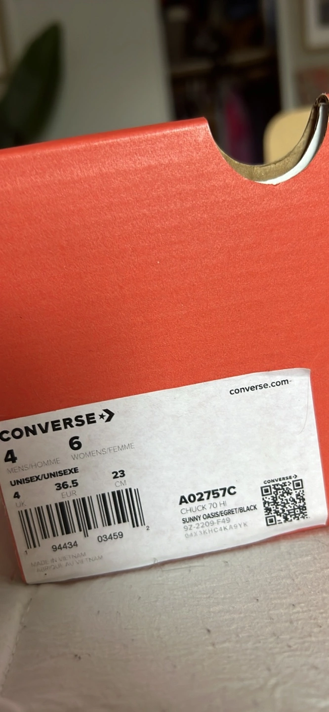 Selling a pair of Converse Chuck 70 Hi sneakers in the Sunny Oasis colour! They are a women's size 6 and come with the original box