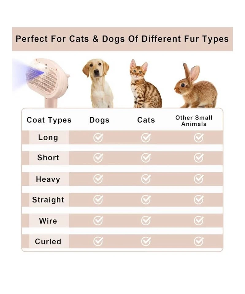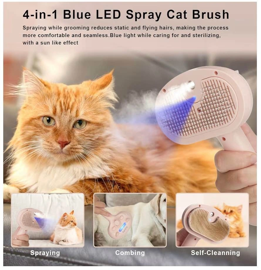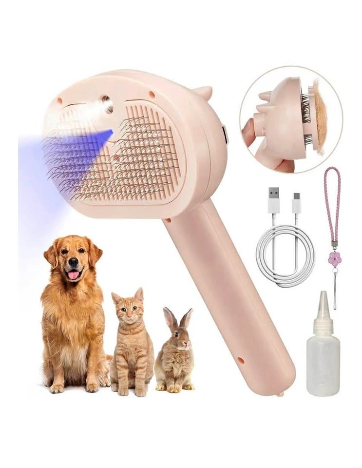 Pet Steam Hair Comb Brush, 4 in 1 (Pink) - New