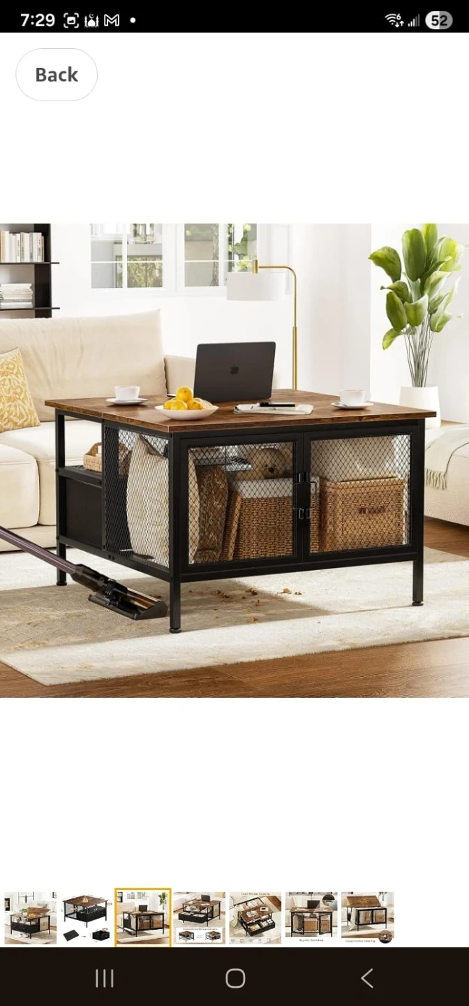 Closed box , never used This coffee table features a lift-top design for easy access to storage. It includes two drawers and a lower shelf with mesh siding for additional storage space. The top surface can be flipped open, revealing a hidden compartment underneath. The overall dimensions are 29.5" W x 20" D x 20" H.