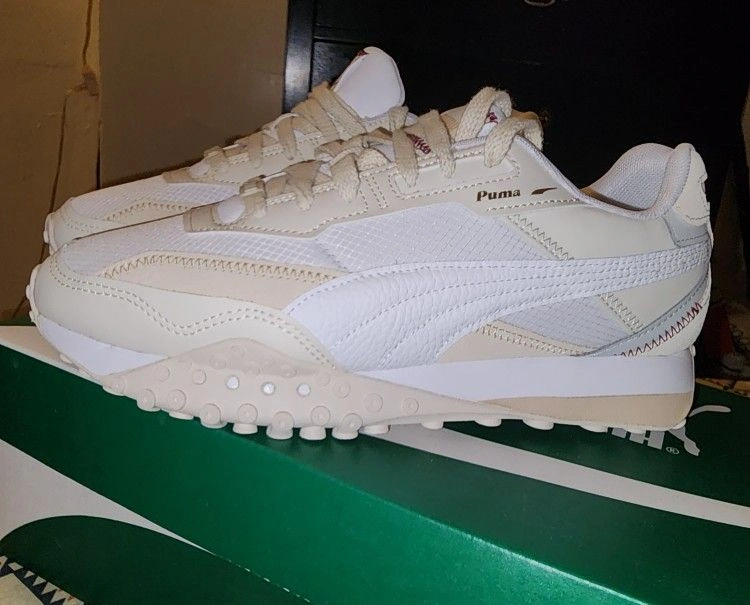 Brand new. Husband purchased the wrong size for me and I couldn't return. Features: Breathable, Cushioned, Comfortable, Lightweight, Lined. Size: 9.5. Color: Beige. Activity: Running. Brand: Puma.