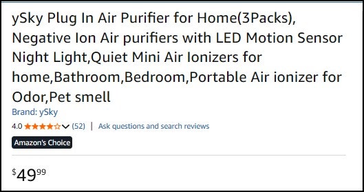 Plug In Air Purifier for Home (3Packs) (Brand New) ySky Plug In Air Purifier for Home(3Packs), Negative Ion Air purifiers with LED Motion Sensor Night Light, Quiet Mini Air Ionizers for home,Bathroom,Bedroom,Portable Air ionizer for Odor,Pet smell