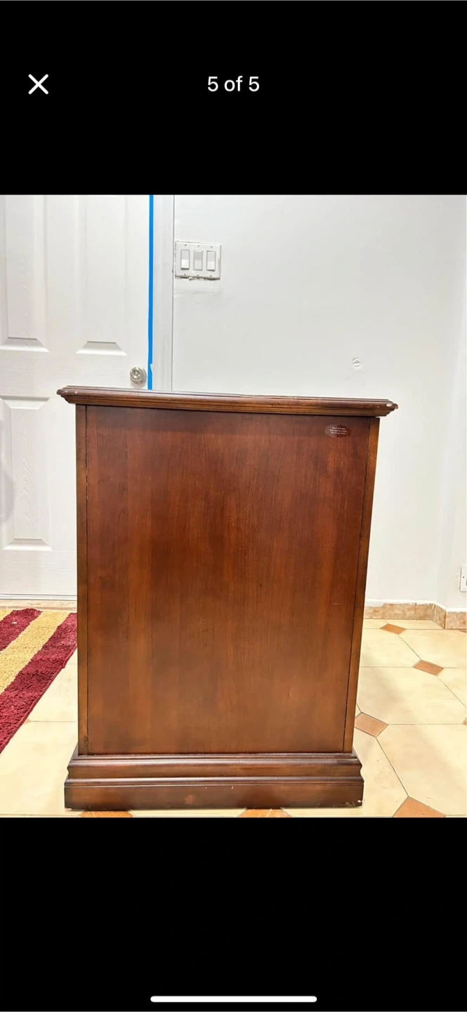 Here's a lovely wooden filing cabinet with two drawers. It's a great piece for adding some classic style to your home office or workspace. The drawers provide ample storage for your important documents and files. It's in good condition and ready to use!