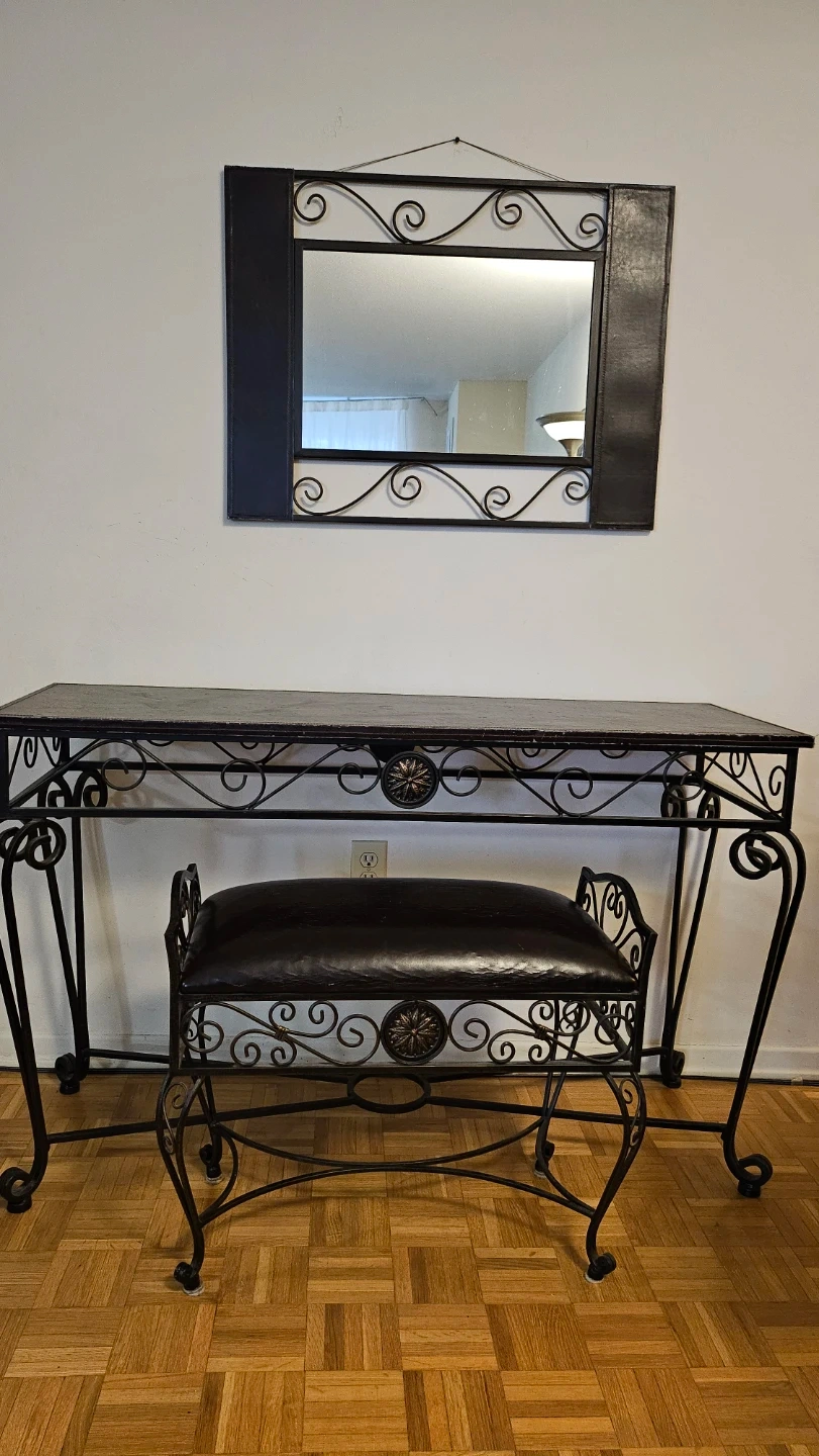 Wrought Iron Console Table with Mirror and bench