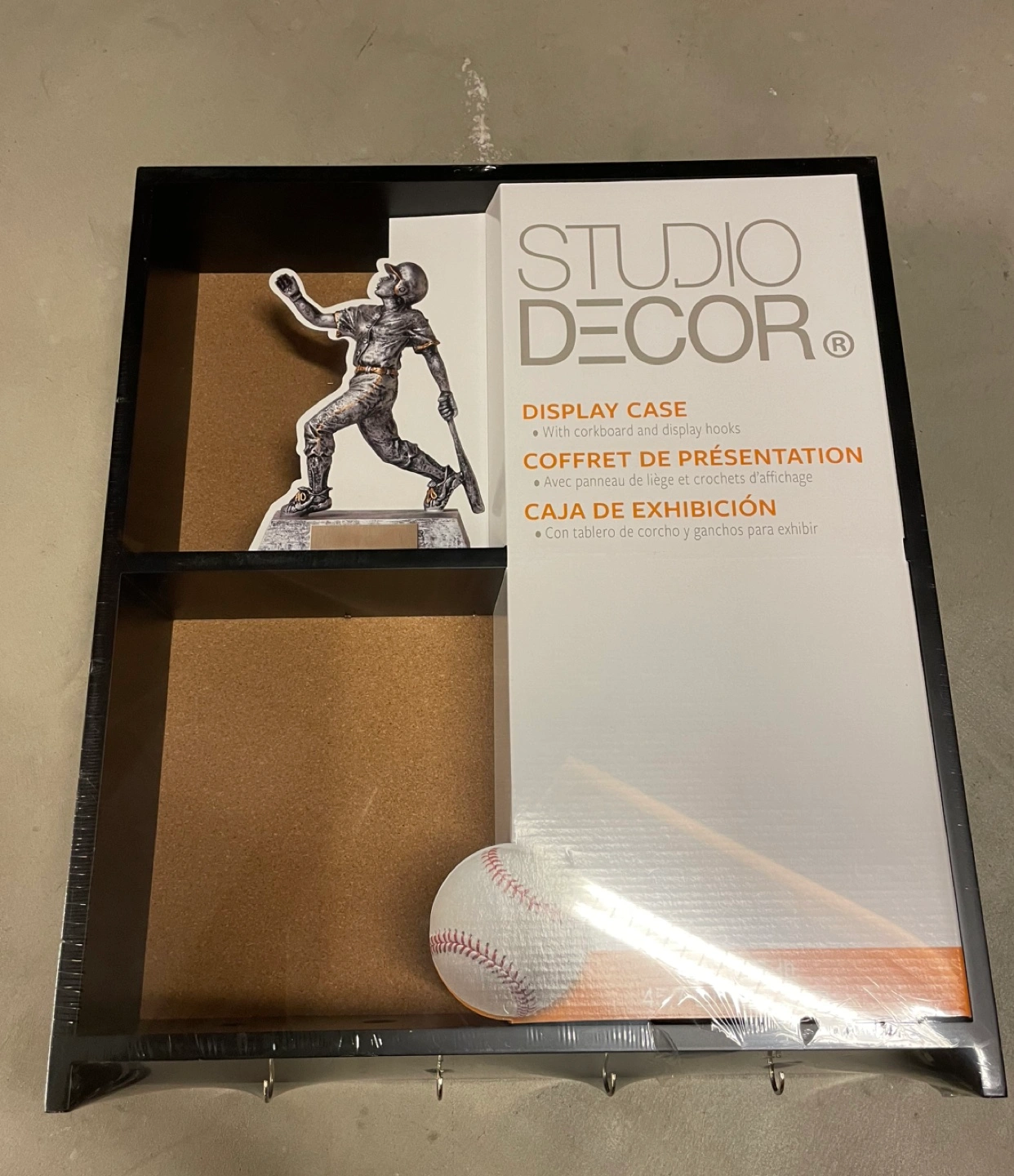 New Studio Decor Display Case w/ Cork Board & Display Hooks