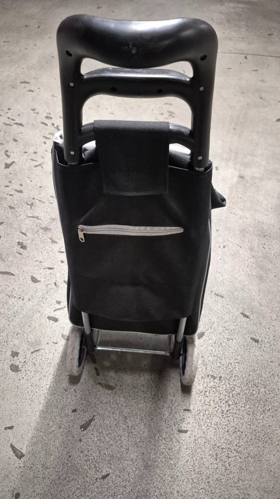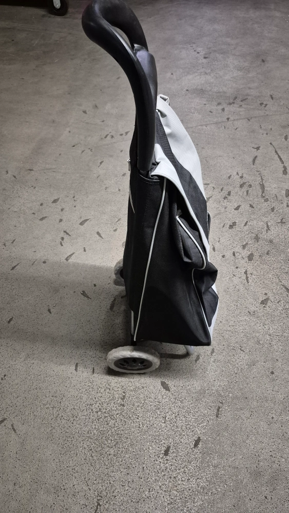 Selling a handy shopping trolley cart in black and white. It's perfect for carrying groceries or other items with ease. The wheels roll smoothly, and the handle is comfortable to grip. Great for trips to the market or laundry runs!