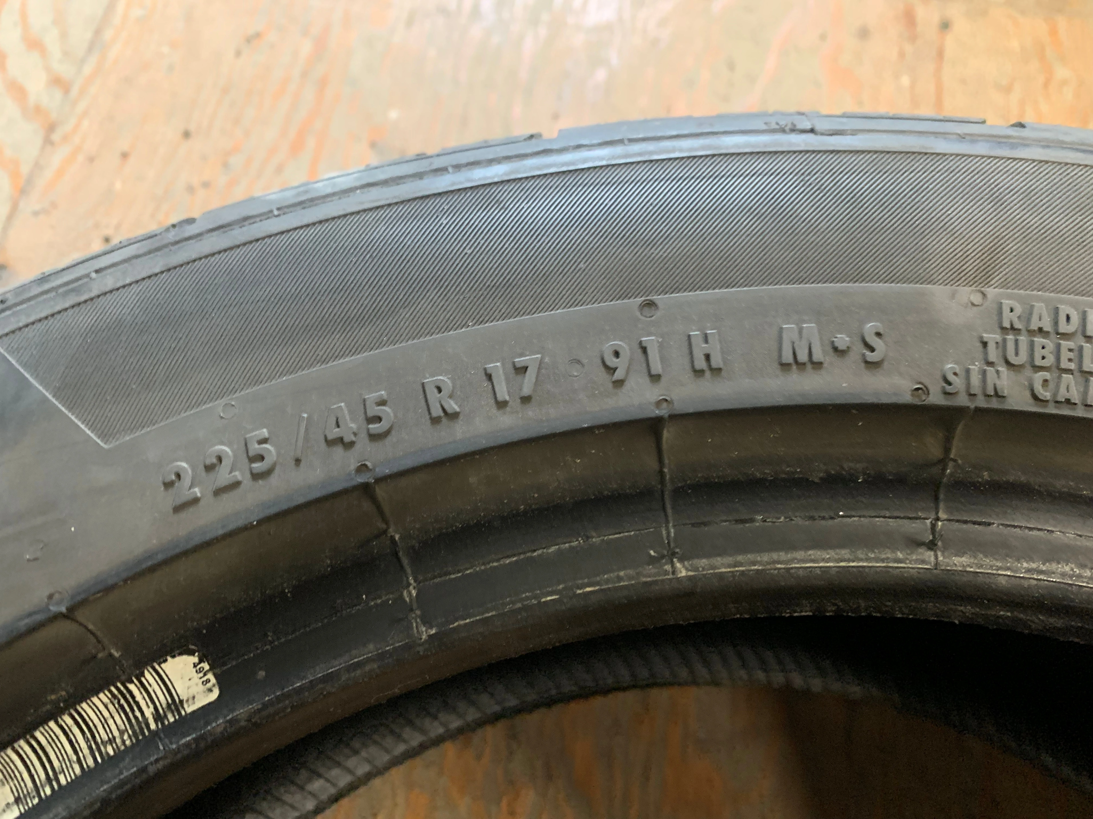 size 225/45/17 91H M+S Continental Pro contact TX with no repairs and 85% tread