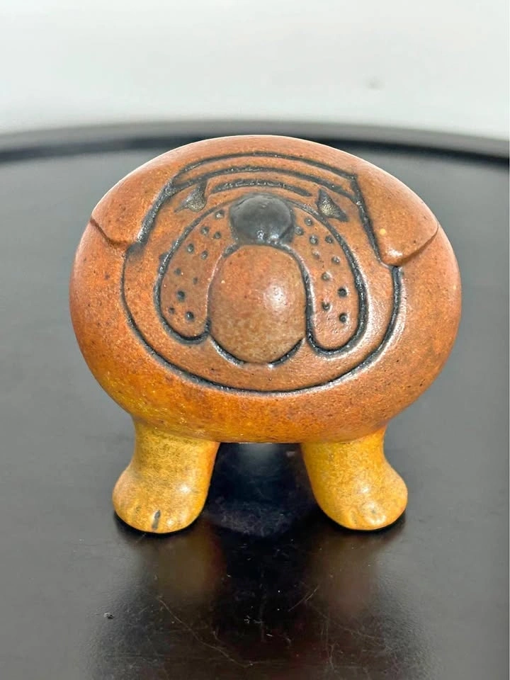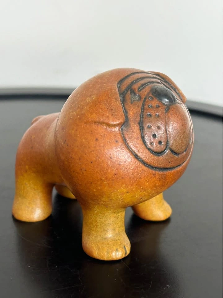 Authentic mid-century stoneware Bulldog designed by renowned Swedish ceramic artist Lisa Larson for Gustavsberg. Part of the iconic Kennel series introduced in 1972, this piece is a classic example of Scandinavian modern design. Crafted in textured chamotte stoneware and finished with subtle hand-painted details, the figure captures Larson’s signature style—minimalist, expressive, and full of personality. The bulldog’s charming, slightly grumpy expression makes it especially desirable among collectors. Clearly marked on the underside with the original Gustavsberg Sweden stamp, confirming authenticity. The piece remains in excellent vintage condition with no chips, cracks, or repairs. A highly collectible example of 1970s Scandinavian ceramics, perfect for enthusiasts of mid-century modern design, Swedish pottery, or Lisa Larson’s celebrated work. Pick up in the Seton area, Calgary. Cash or e-transfer accepted. Please look carefully at the photos, as these are not new items. Feel free to message if you have any questions!