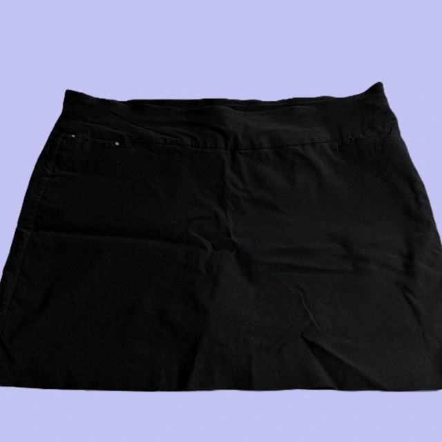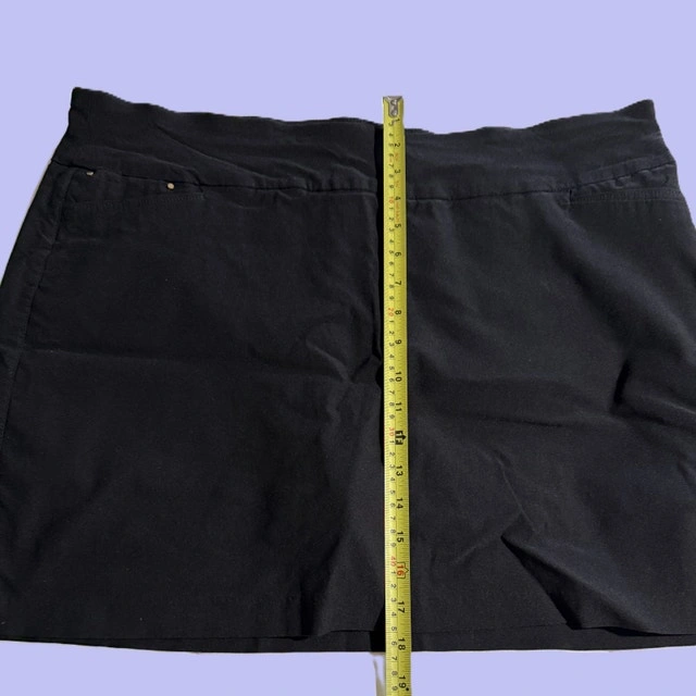 Black Stretch Comfort Shaping Skort/Skirt. Made with 75% Rayon, 22% Nylon, 3% Spandex. Pre-owned condition from a smoke-free/pet-free home. Size Extra Large (16-18). Cash and cashless payments accepted. For sale by owner. Curbside pickup available.