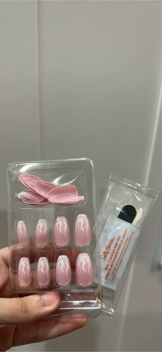 Glue missing so replaced with a package of sticky nail tabs, a nail file, and cuticle pusher (brand new, never opened).
