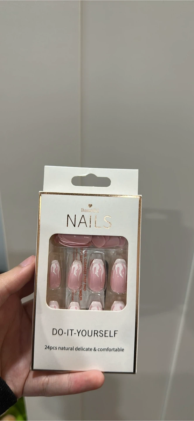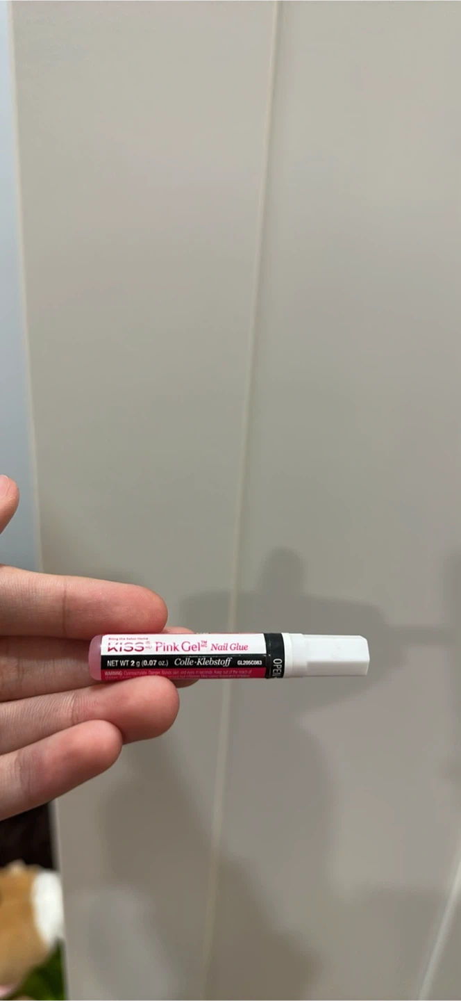 Glue missing so replaced with a package of sticky nail tabs, a nail file, and cuticle pusher (brand new, never opened).