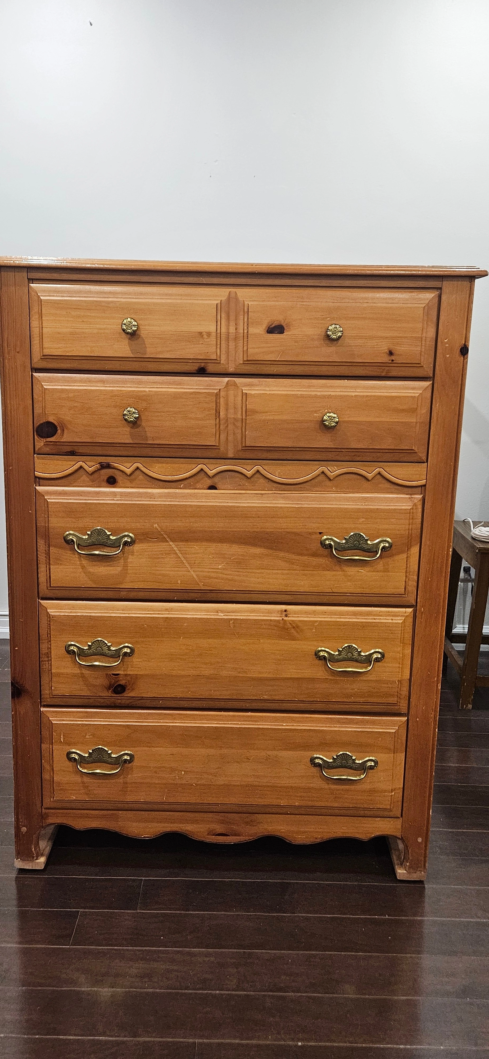 Urgent moveout Sale of excellent condition Solid Oak Bedroom Dresser. 5 Full Size Drawer with nice Golden Handles