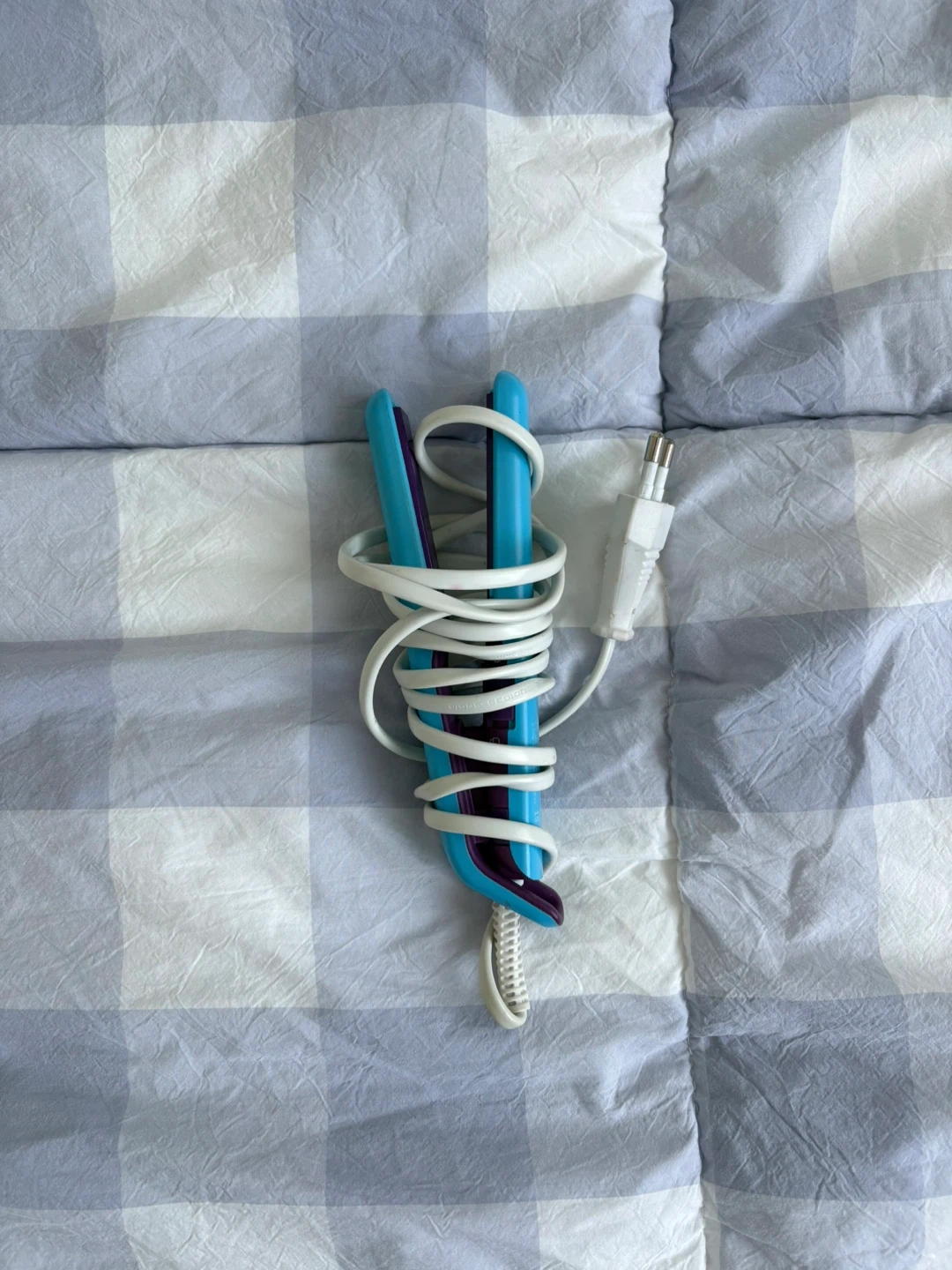 Selling a mini hair straightener in blue. It's designed for travel and easy to use. Compact and efficient for quick styling needs!