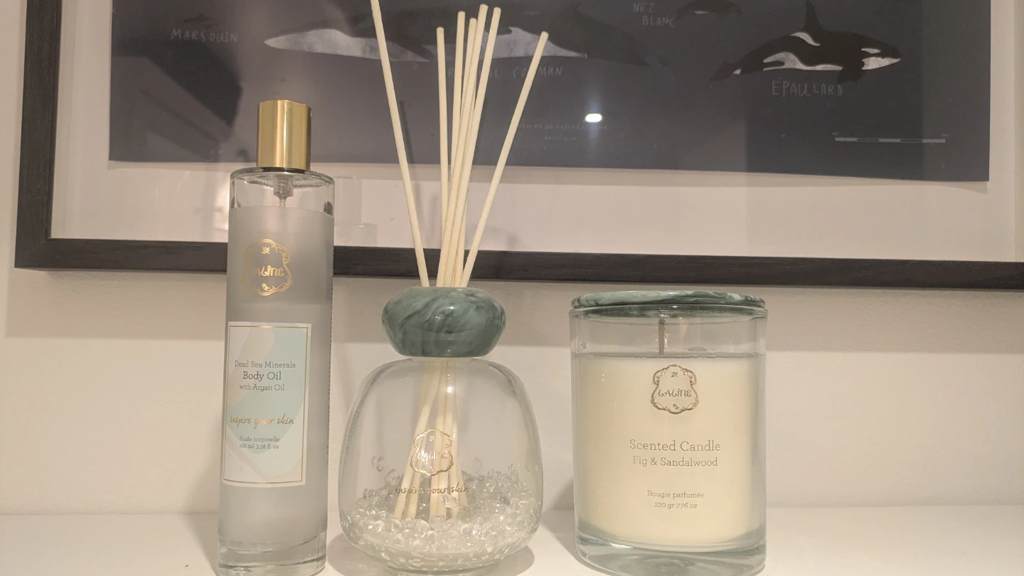 A matching fig & sandalwood scented diffuser (no oil remaining but can be refilled). Comes with original presentation tube.
