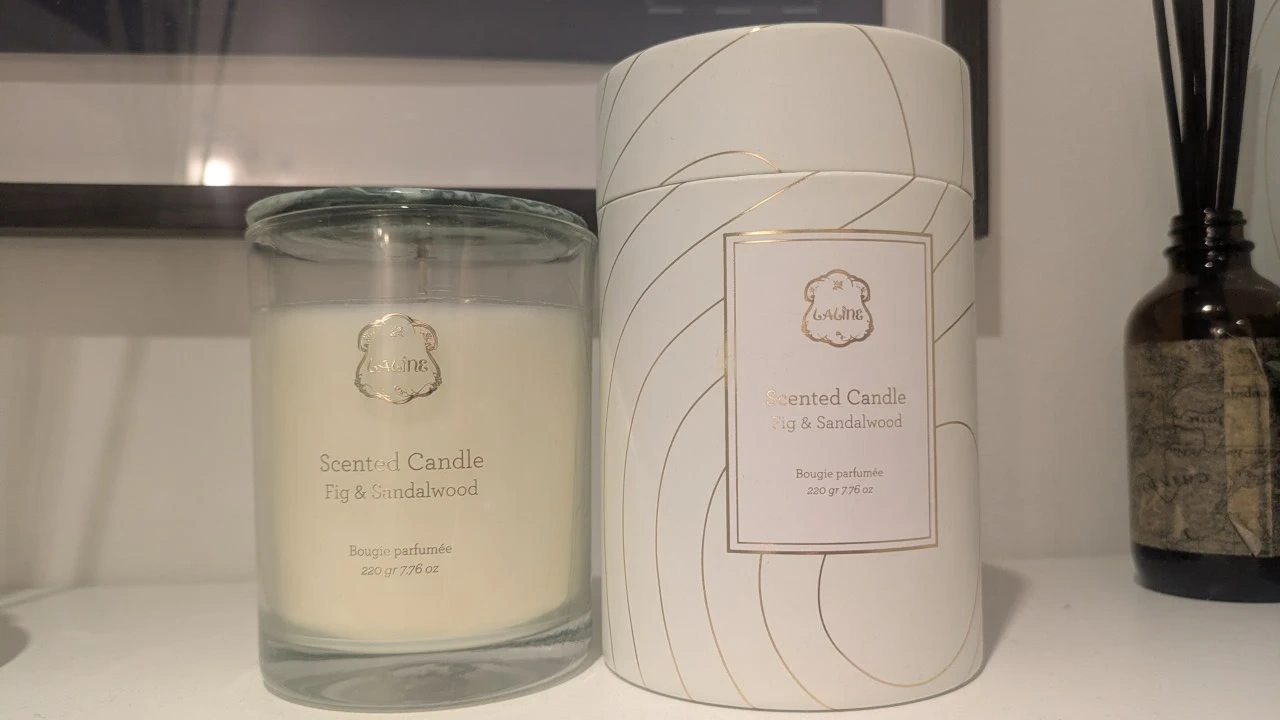 Unused Laline scented candle in a Fig & Sandalwood scent. It's in a glass jar with 220g / 7.76 oz of wax. Comes with original presentation tube.