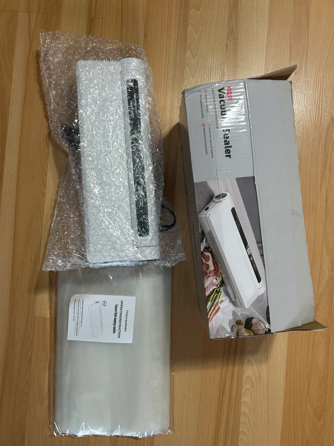 15Selling a brand new vacuum sealer, still in its original box! It's perfect for keeping your food fresh for longer. The box includes the vacuum sealer itself and some bags to get you started