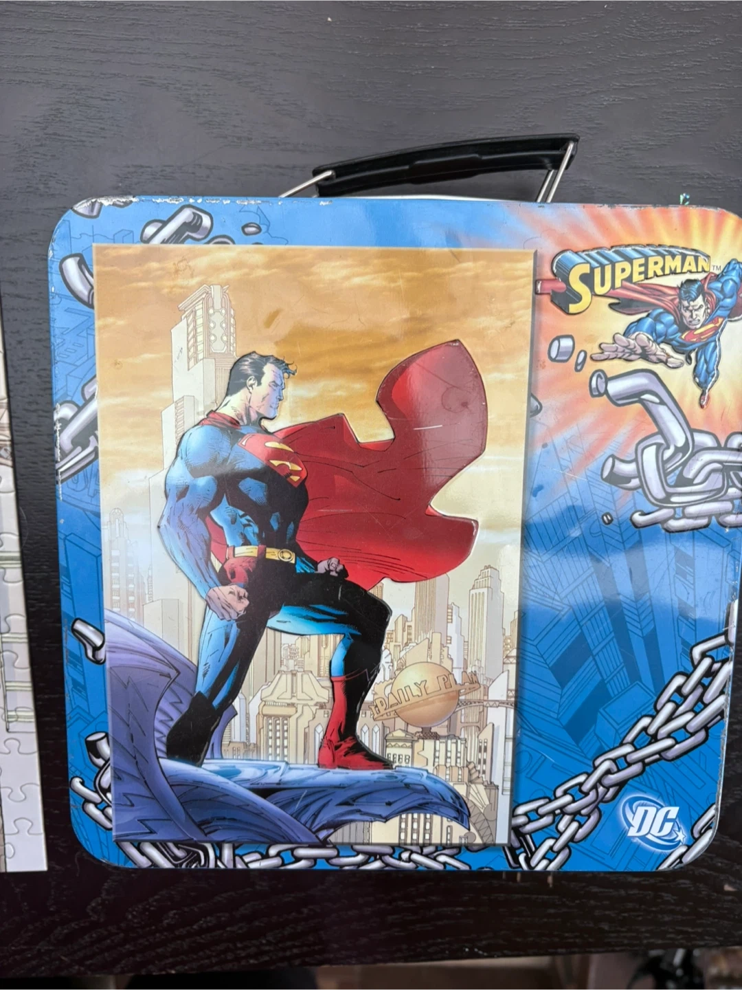 A fun 1000 piece Superman comic puzzle featuring the Man of Steel looking over the city. It's a great way to pass the time! All puzzle pieces are included. Comes in a metal case with handle.