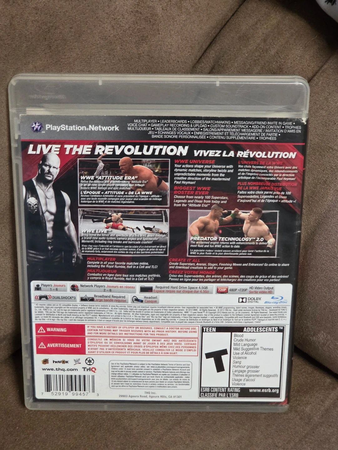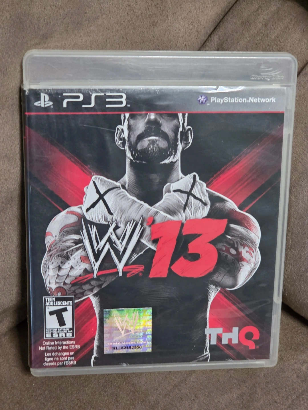 It's the WWE 13 video game for PS3. This game lets you relive the Attitude Era with unlockable legends and arenas. It features a deep career mode and online multiplayer matches.