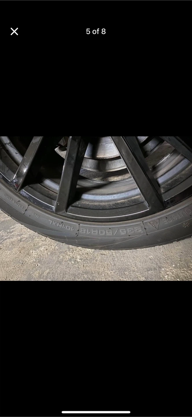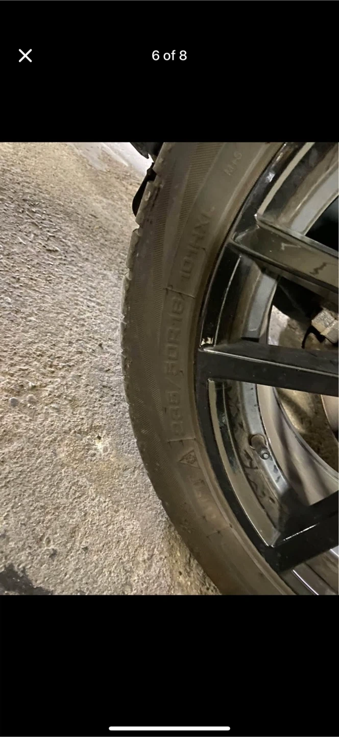 Set of four black alloy rims with winter tires. Rim size is 18 inches with a tire size of 245/50R18. These would be great for winter driving.