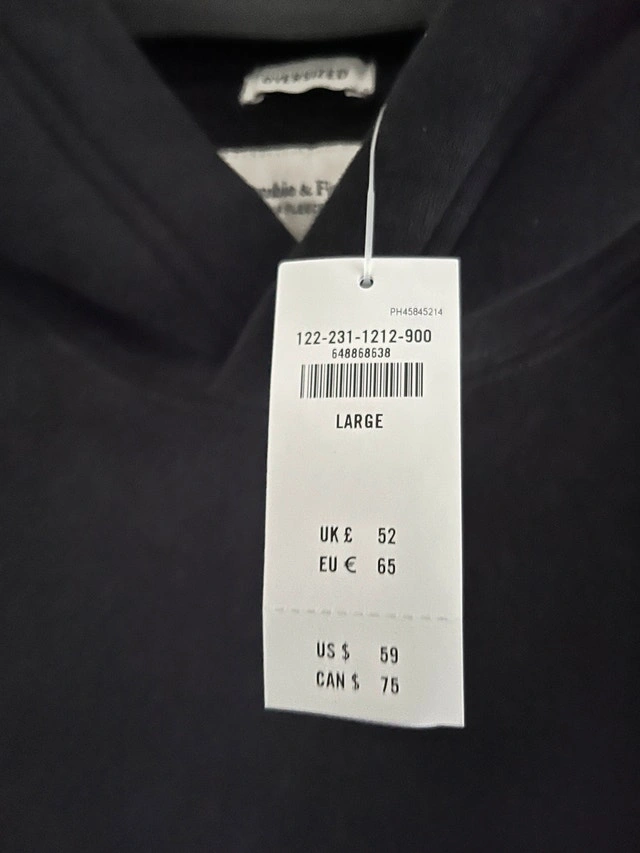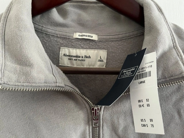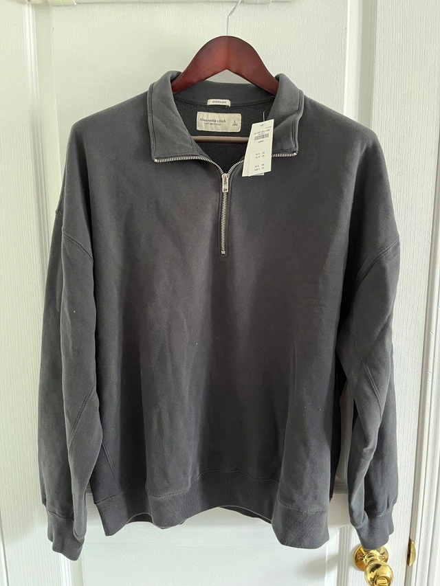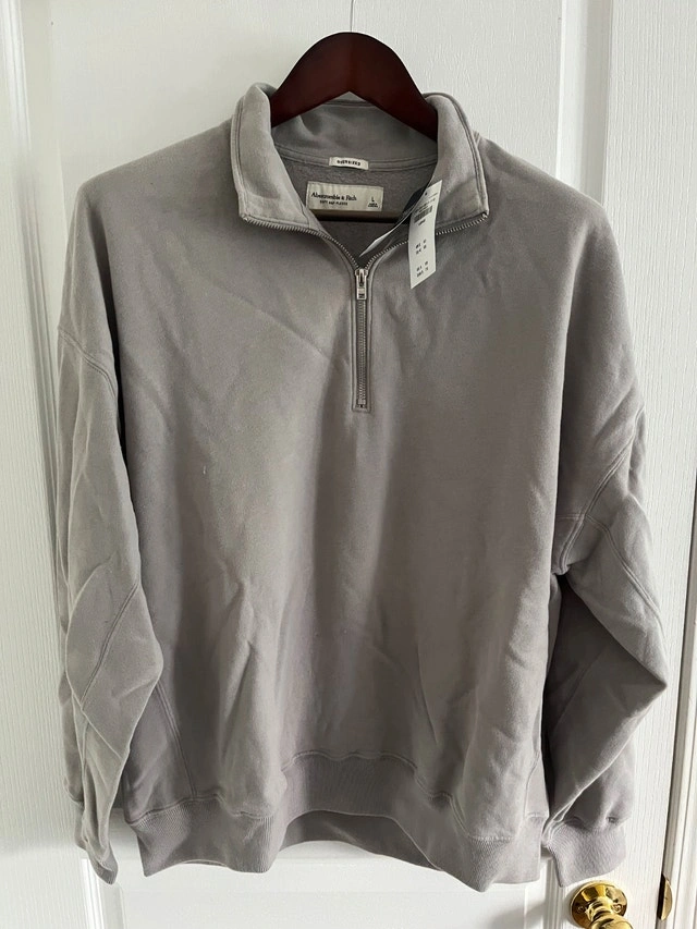 Abercrombie Super Soft Brushed "Oversized" Hoodies, Men's Large. Brand new with tags. Available colours: Black, Navy, Cream/Ivory, Light Burgundy (Brick). MSRP: $75. Price: $60 each. All four sweaters for $220 firm. Also available: Abercrombie & Fitch 1/2 Zip Soft Fleece Zip Sweaters, new, soft-fleece, Large, "Oversized" Fit. Colours: charcoal and light burgundy. Price: $60 each. Both items for $100 firm.
