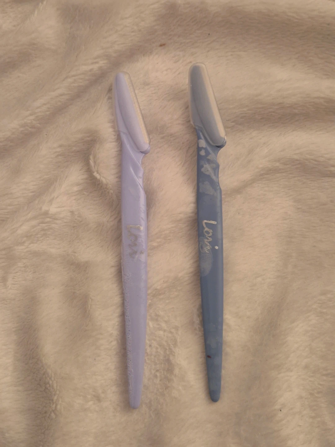 This is a 2-pack of Lovë brand eyebrow razors. They come with protective caps for the blades. They're useful for precise grooming.