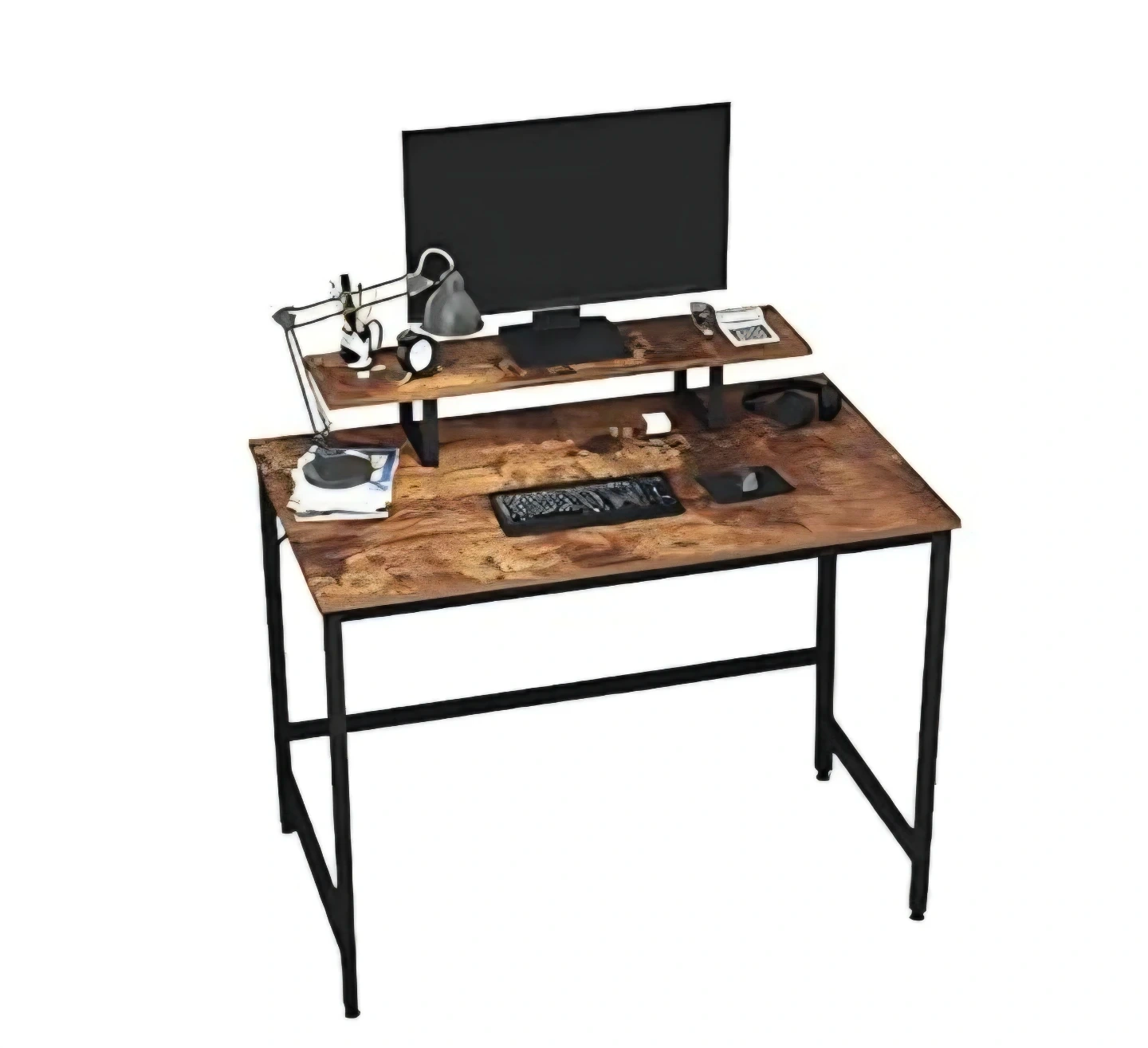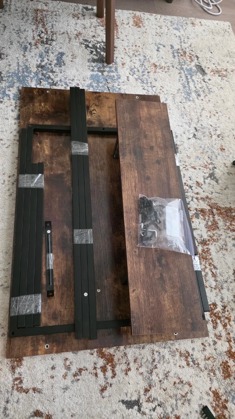Selling a rustic brown computer desk, perfect for your home office or study space! It comes with a shelf for extra storage and organization. The desk is sturdy and in great condition, ready to assemble. All the necessary components and hardware are included. 40inch desk. It comes with monitor stand