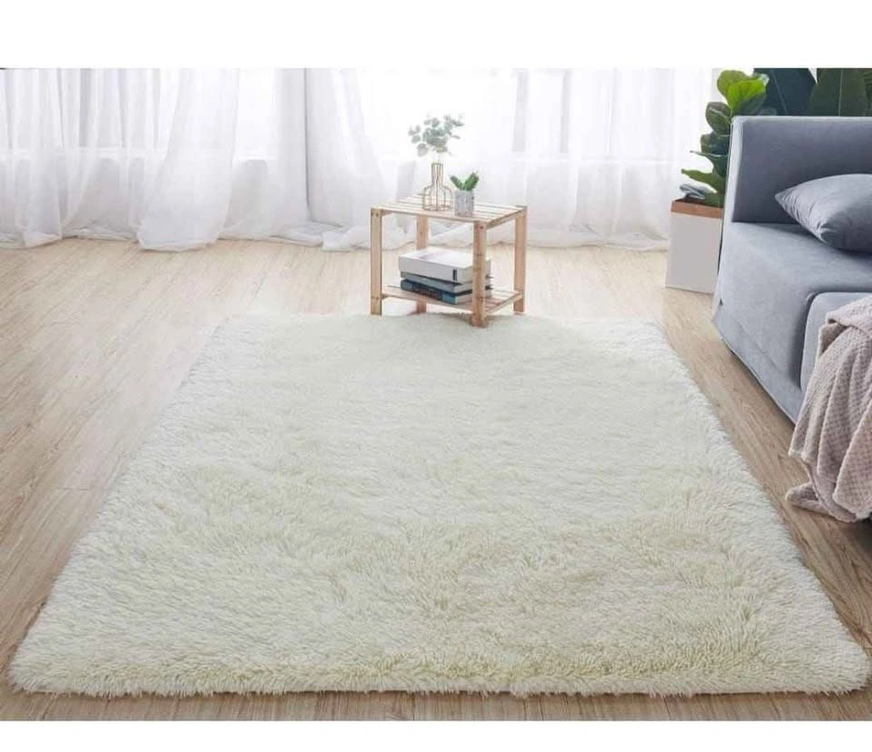 This 6x9 ft area rug is great for your living room, can also be used as a yoga mat or a kitchen mat. It's a thickened rice white color.