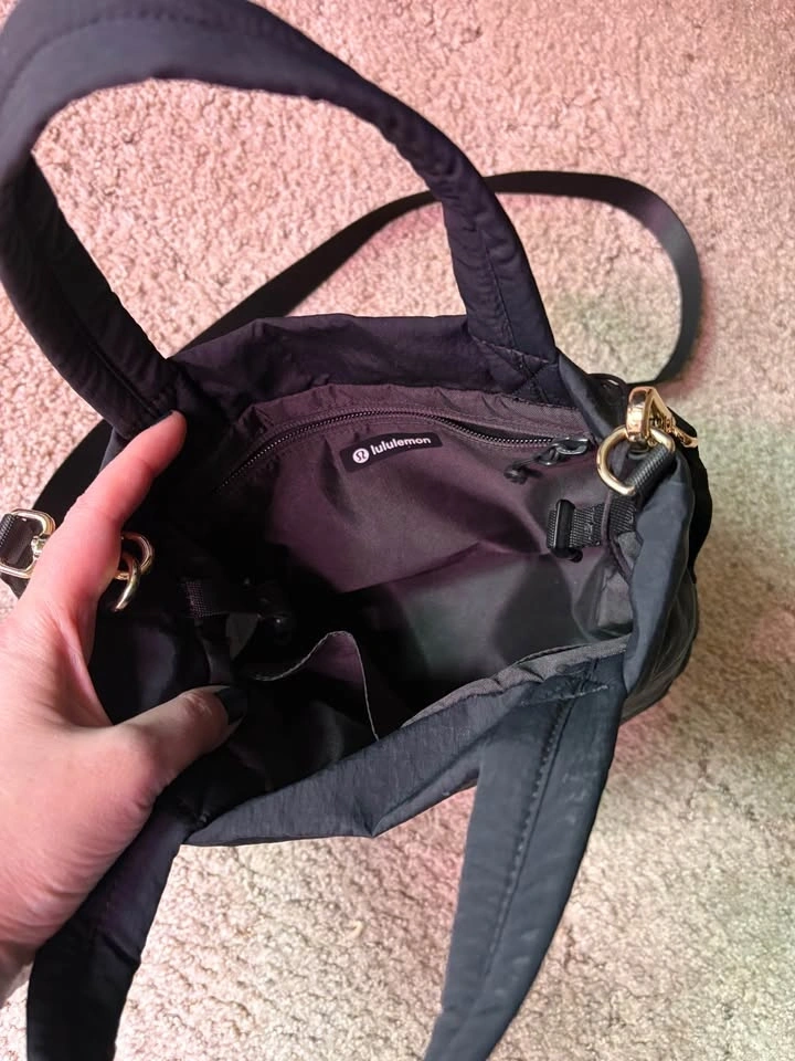 On My Level Small Tote Bag 5L in black and gold! Whether your morning starts with a class or errands, this small version of our On My Level Tote is always a winner. It's the perfect size for your journal, phone, and snacks. Located near Kennedy road and Stouffville road in the Markham Stouffville area. No shipping. First come, first served.